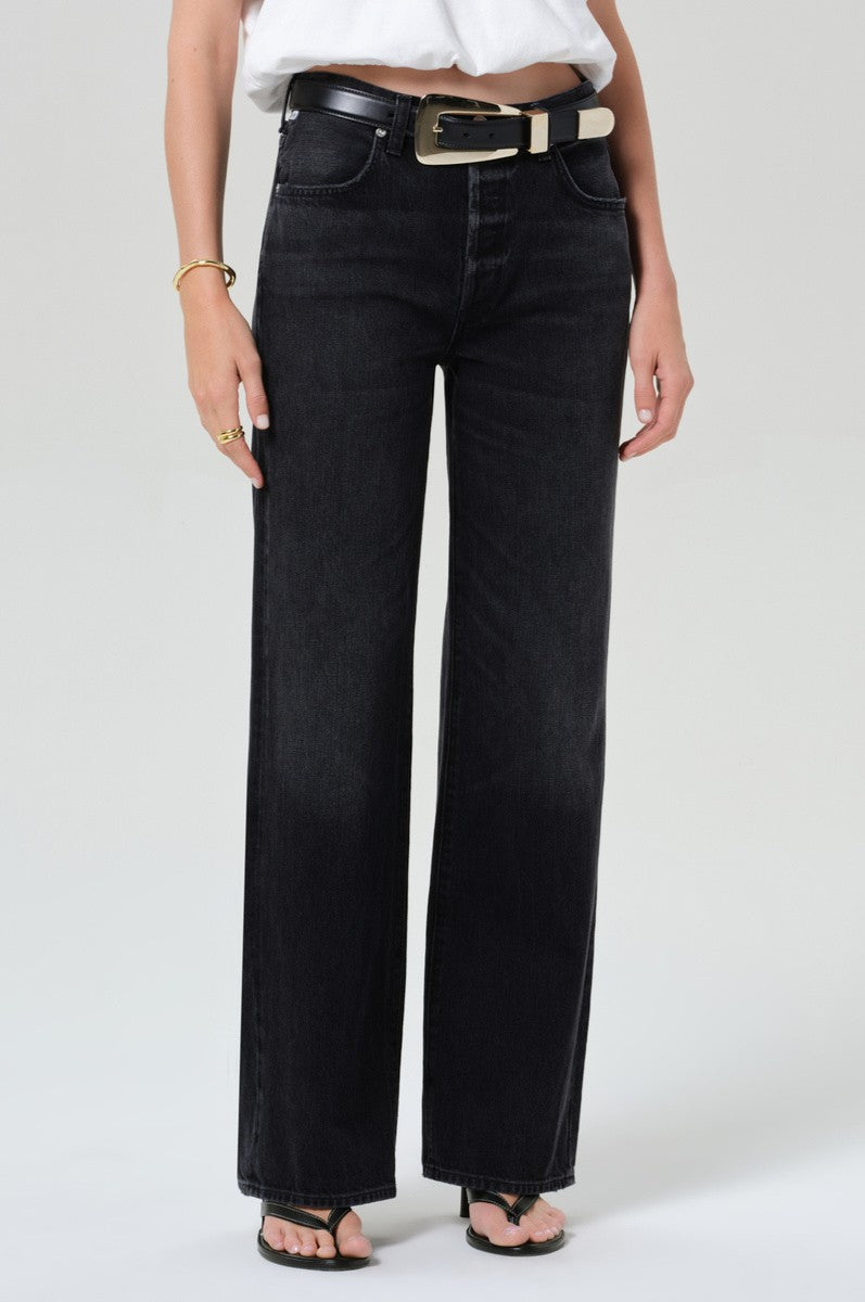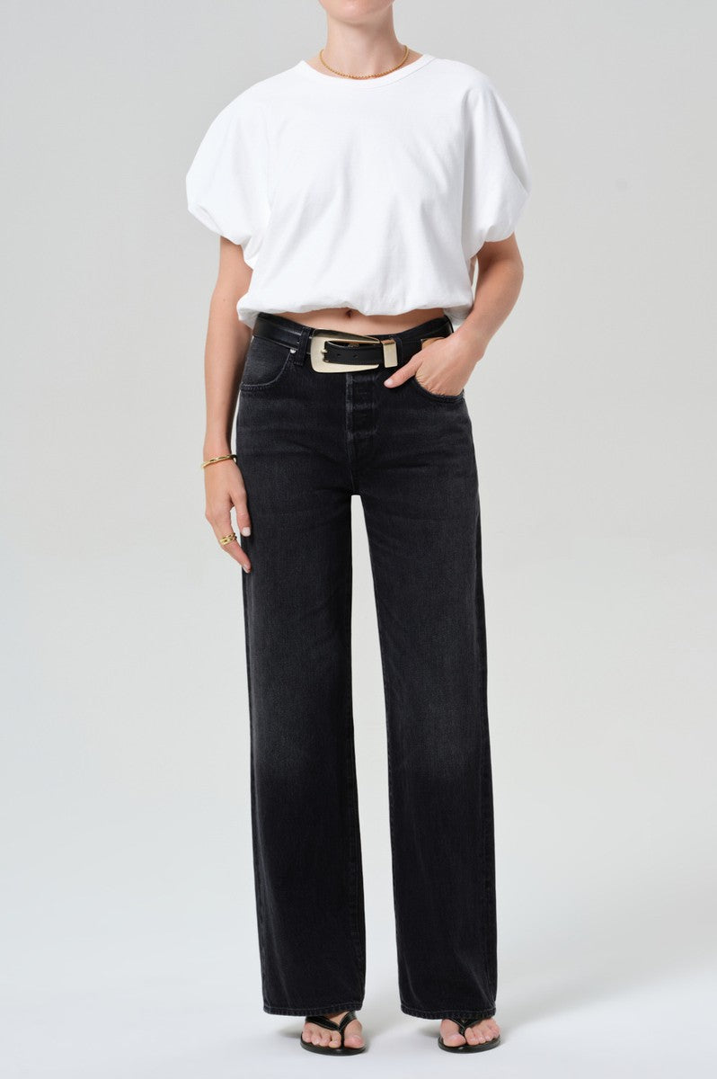 - The ‘Annina’ jean is cut with a high rise and full-length, straight leg for a clean, elongating silhouette. The ‘Raine’ wash—a softly faded black—is crafted from rigid regenerative cotton with a luxe, soft hand. Pair with tonal layers or crisp shirting for an effortless, polished look.