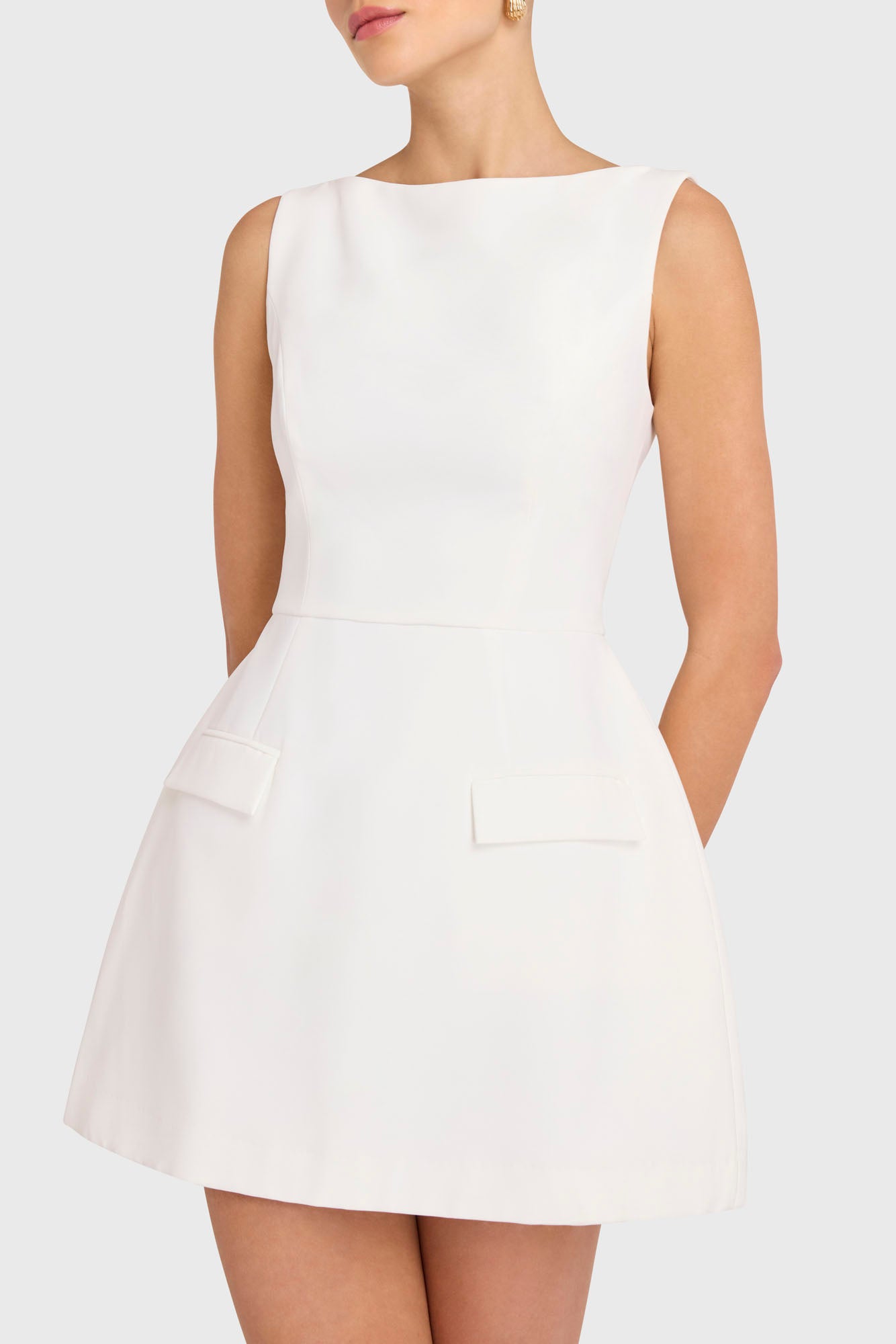 The Banco Mini Dress combines timeless elegance with modern sophistication. This tailored piece features a flattering boat neckline that frames the shoulders beautifully, while the mini silhouette offers a chic, contemporary look perfect for any occasion.