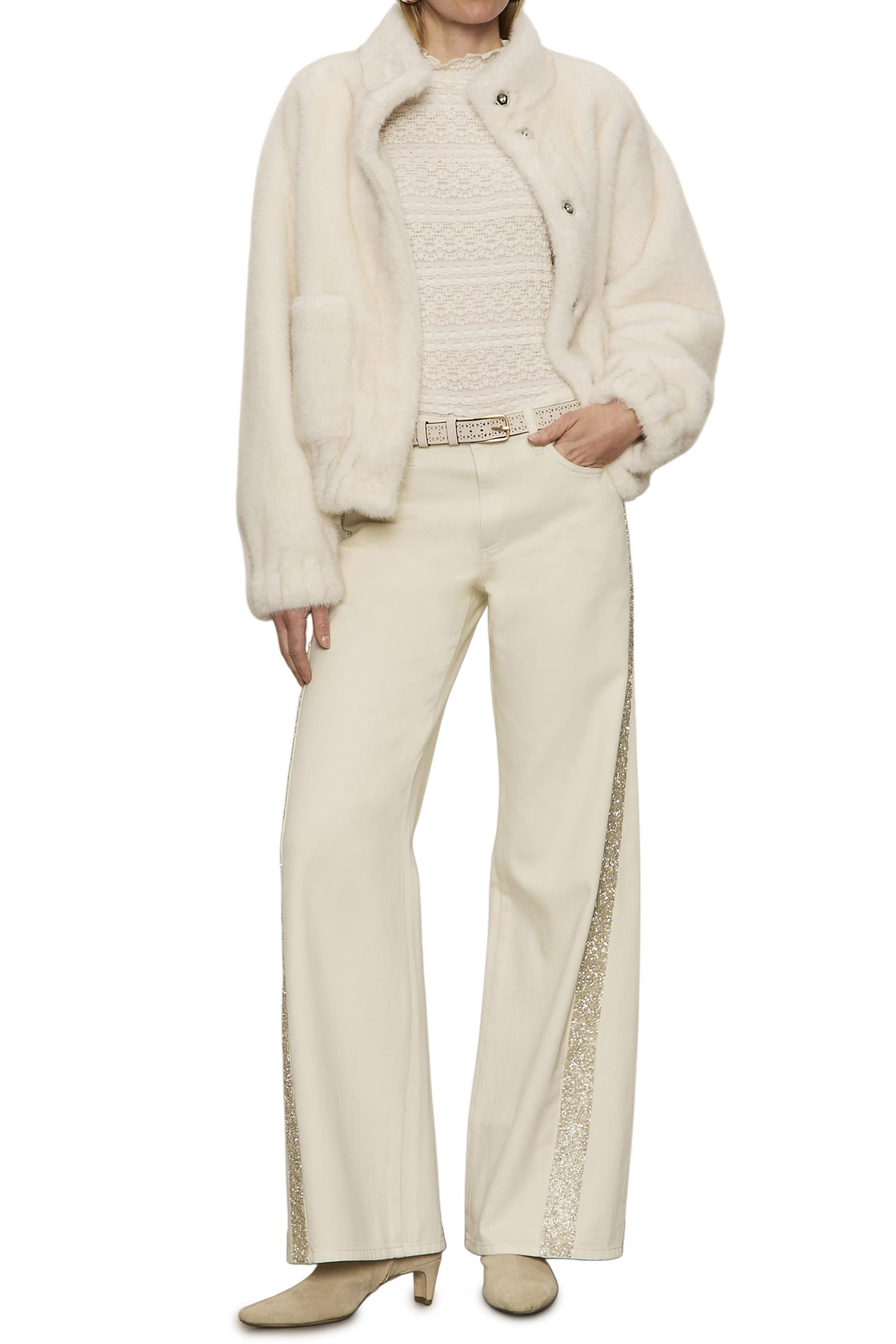 - Relaxed fit straight leg jean with twisted seam detail and beaded tape trim, rigid