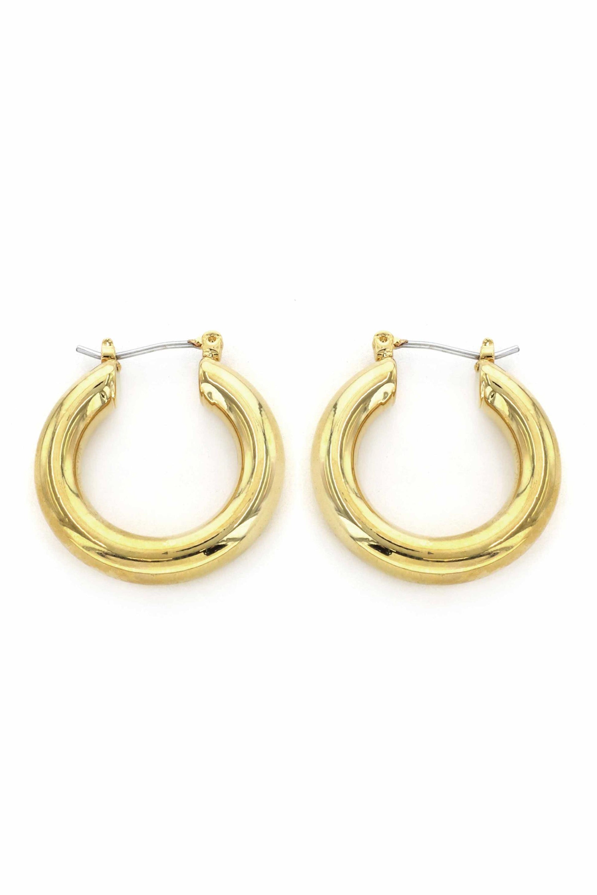 - Gold Hinge Hoop Earrings are a lovely medium scale gold hoop with a hinge post closure. Great for everyday and stacking.