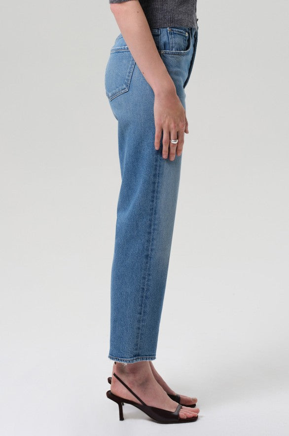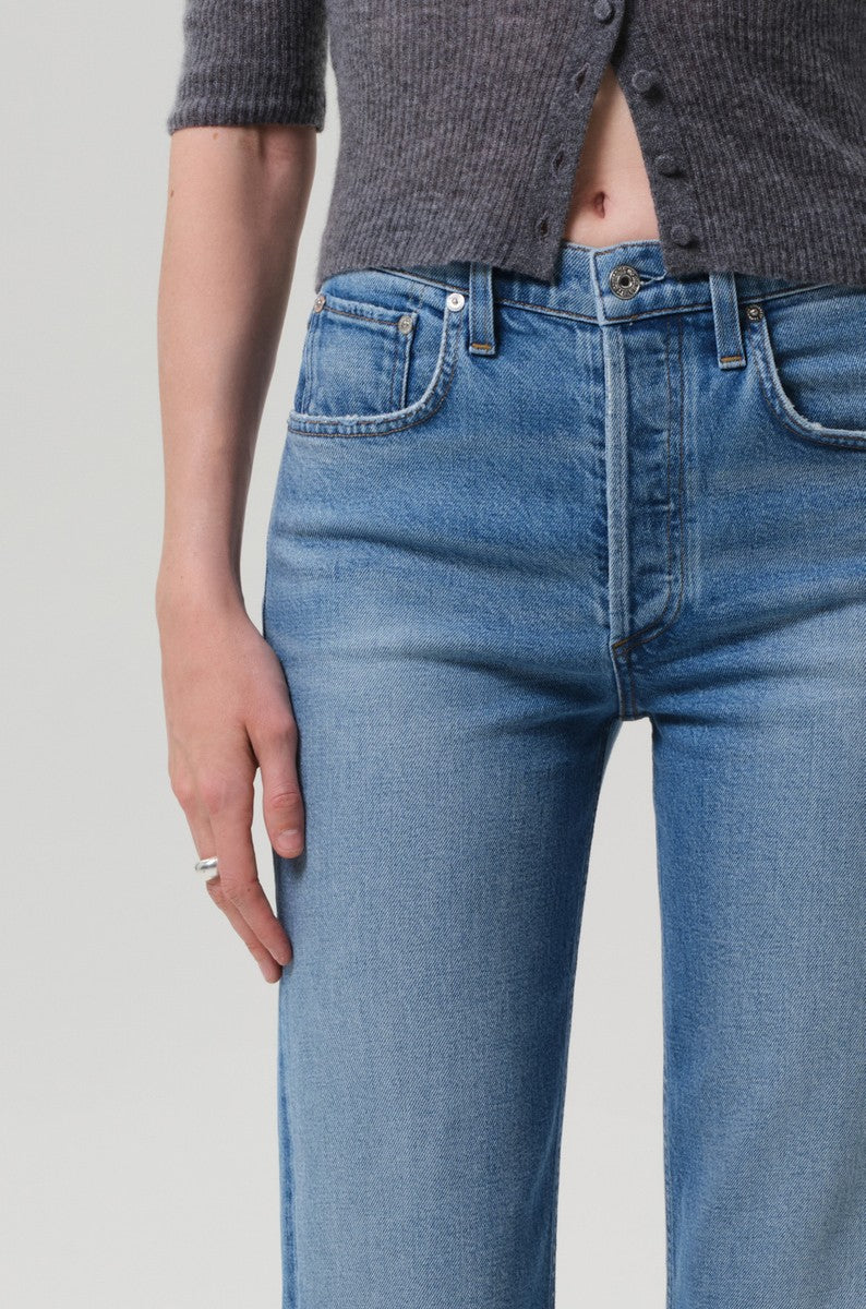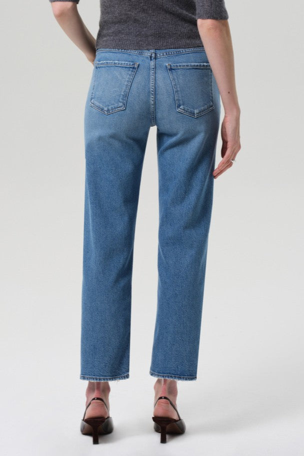 - The ‘Delfina’ is a high-rise straight leg crafted from comfort stretch denim with a super soft, broken-in hand. Designed for everyday ease, the silhouette flatters while allowing effortless movement. The Odina wash—a medium indigo with soft fading, marbling, and whiskering—offers a versatile, worn-in feel. Perfect paired with crisp shirting or easy knits.