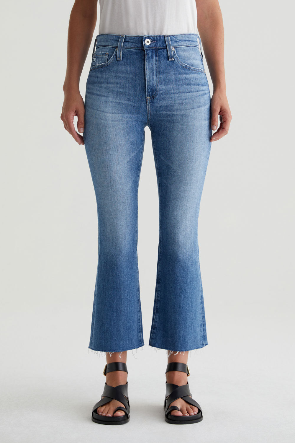 - The Farrah Boot Crop is a mid-rise bootcut silhouette with raw, cut hems. The style has a skinny fit through the legs before opening into a subtly flared shape. Designed in 11.75 oz. Vintage Comfort Stretch Denim from Italy, these women’s bootcut jeans come in a classic medium indigo wash with fading and worn edges.