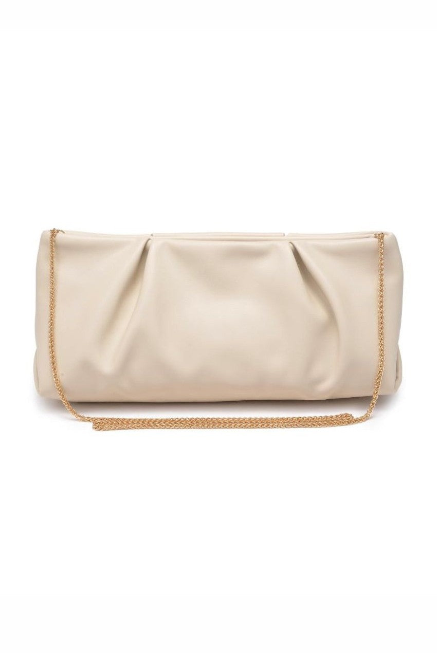 - Exterior Details: Gold Hardware, Detachable Chain Strap, Pleated Design