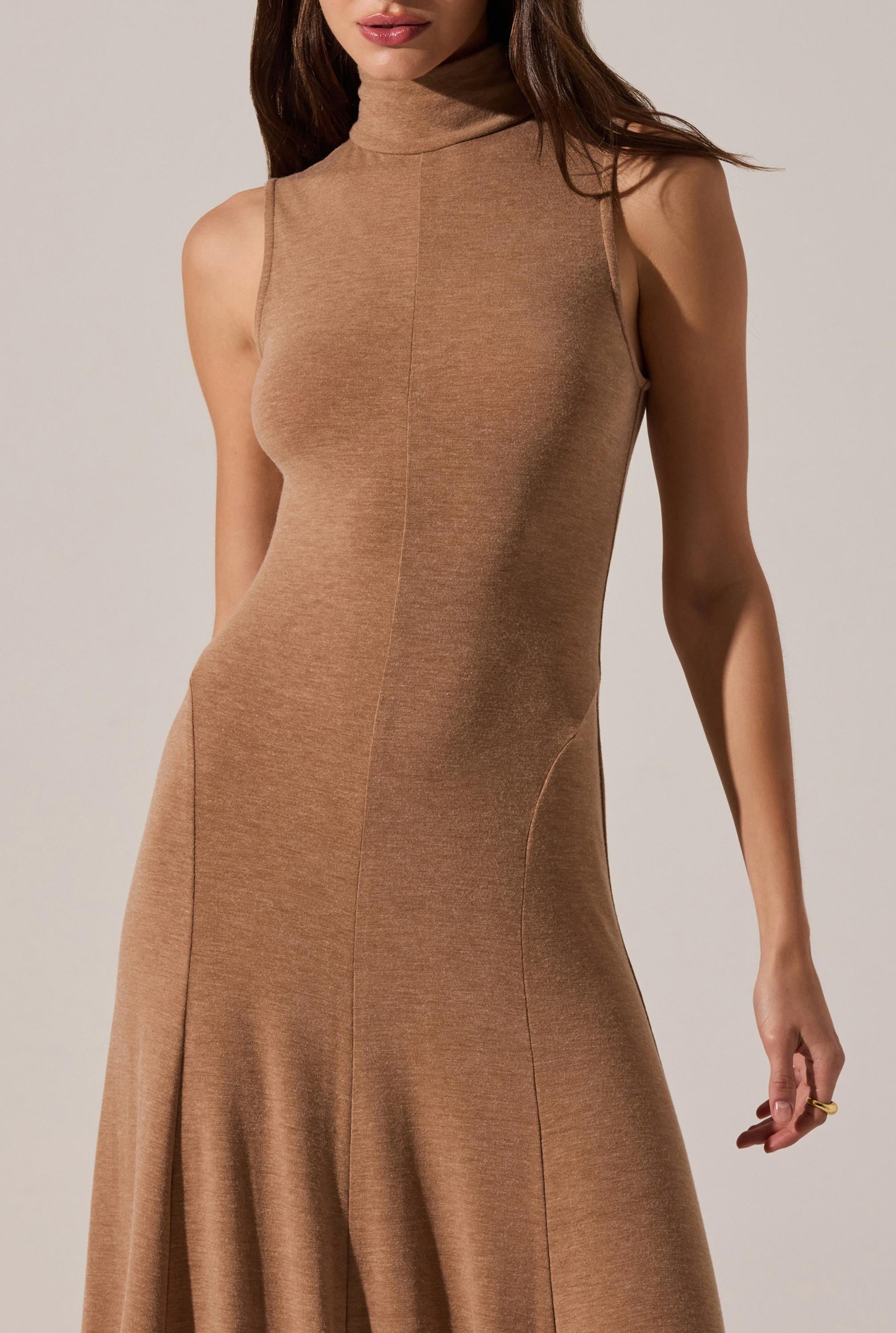 - Sweater tank maxi, turtleneck with buttons, seam detailing.