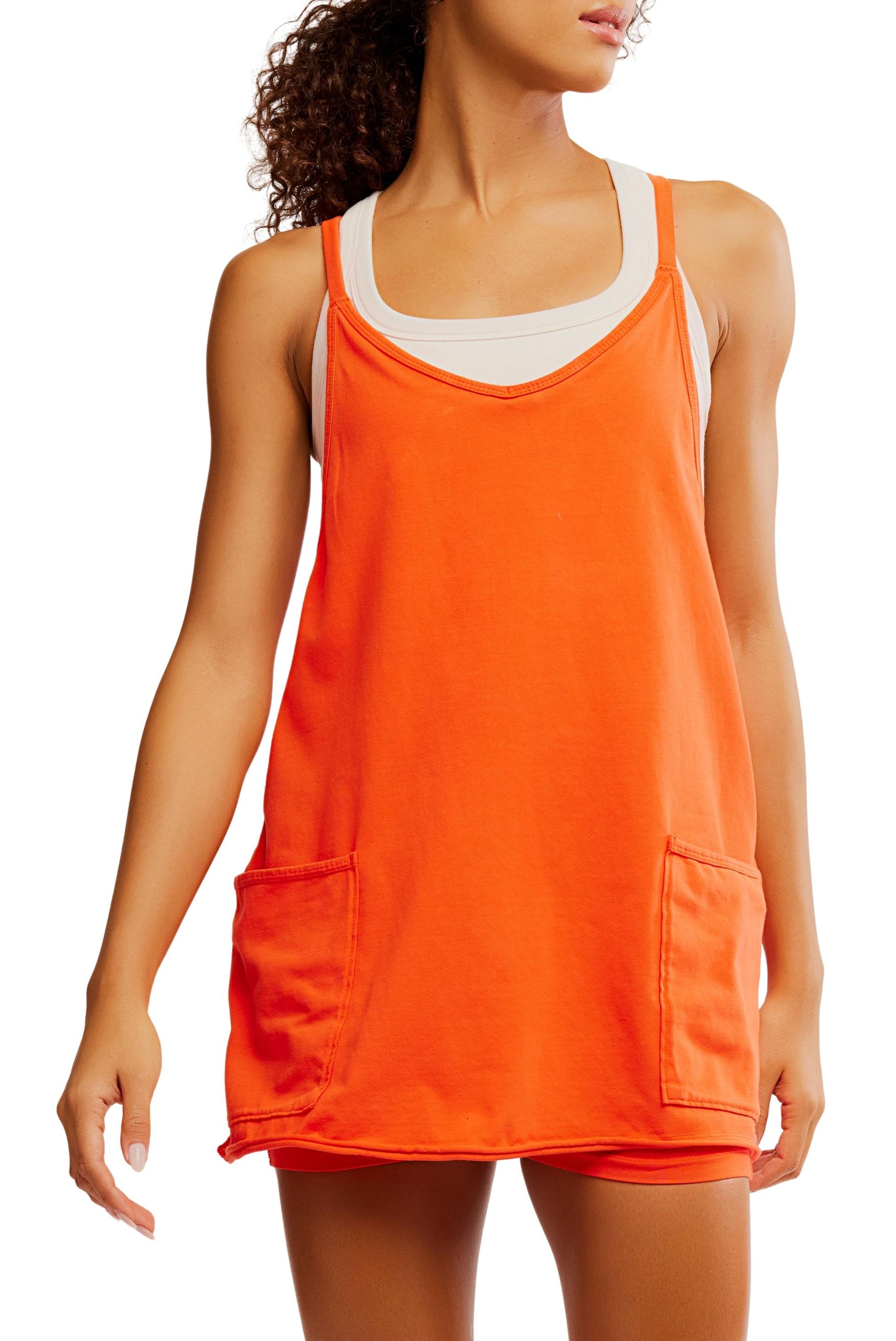 - A fun addition to our Hot Shot collection, this soft dress is featured in a mini-length and lightweight fabrication with oversized patch pockets and built-in shorts.