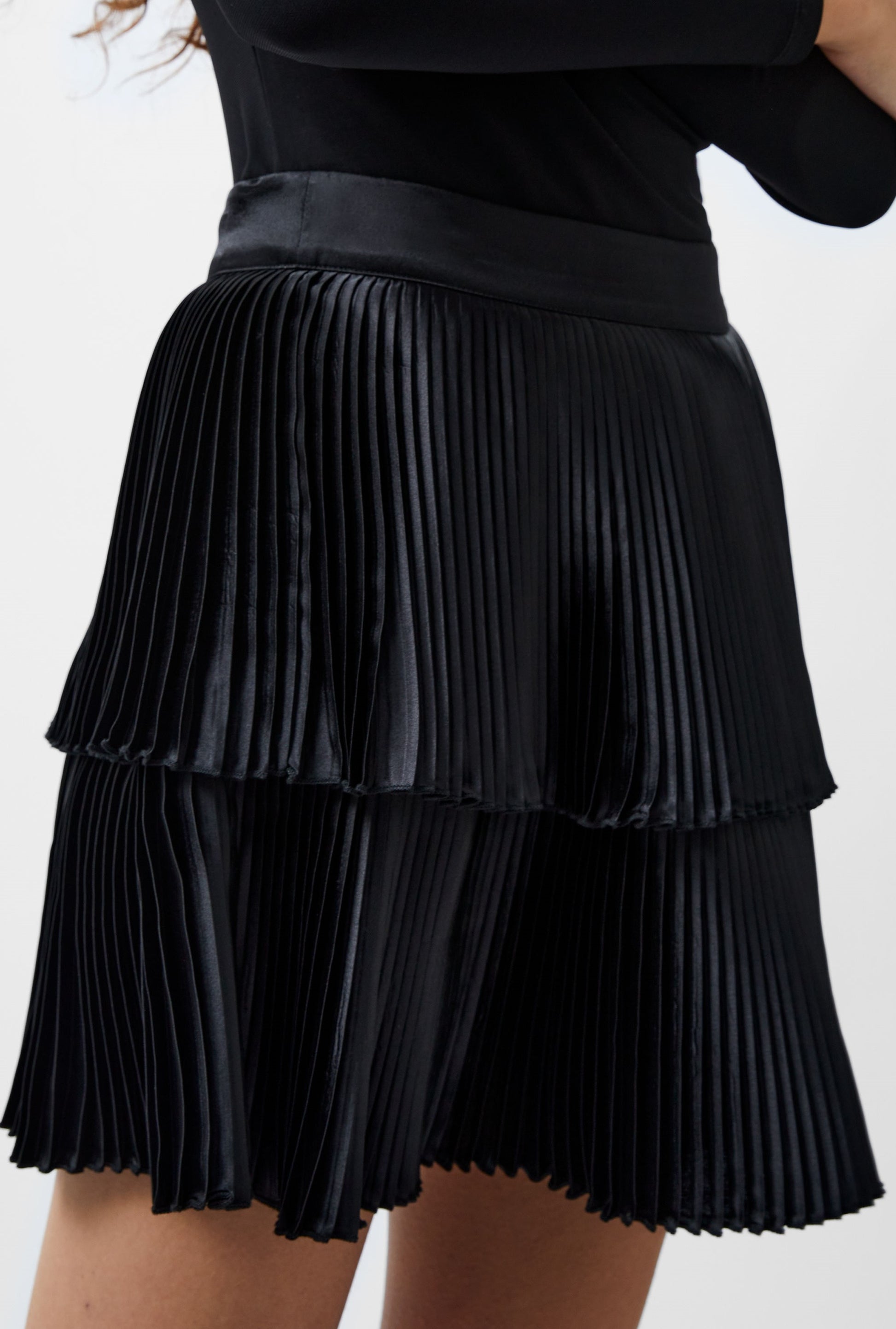 - Our Ilsa Pleated Mini Skirt was made for sashaying into party season. This little black skirt elevates its petite body with two tiers presented in sheen finish pleating whilst secured by a discrete side zip. This mini skirt is set to make movement.