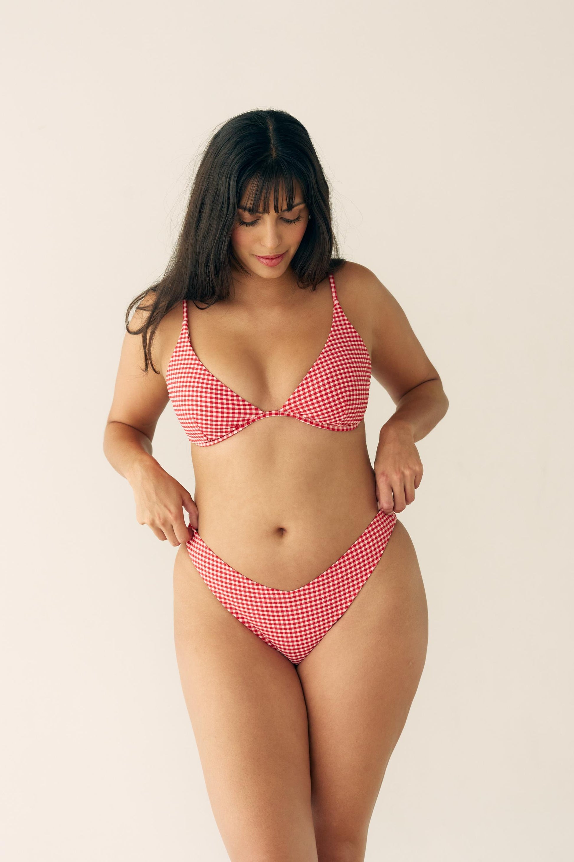 The Katie Bottom features an ultra-flattering v-silhouette that flatters all curves. Offering cheeky coverage and a mid-rise fit, this style is sure to become a staple in your swim collection. Complete the set with the Carly Top.