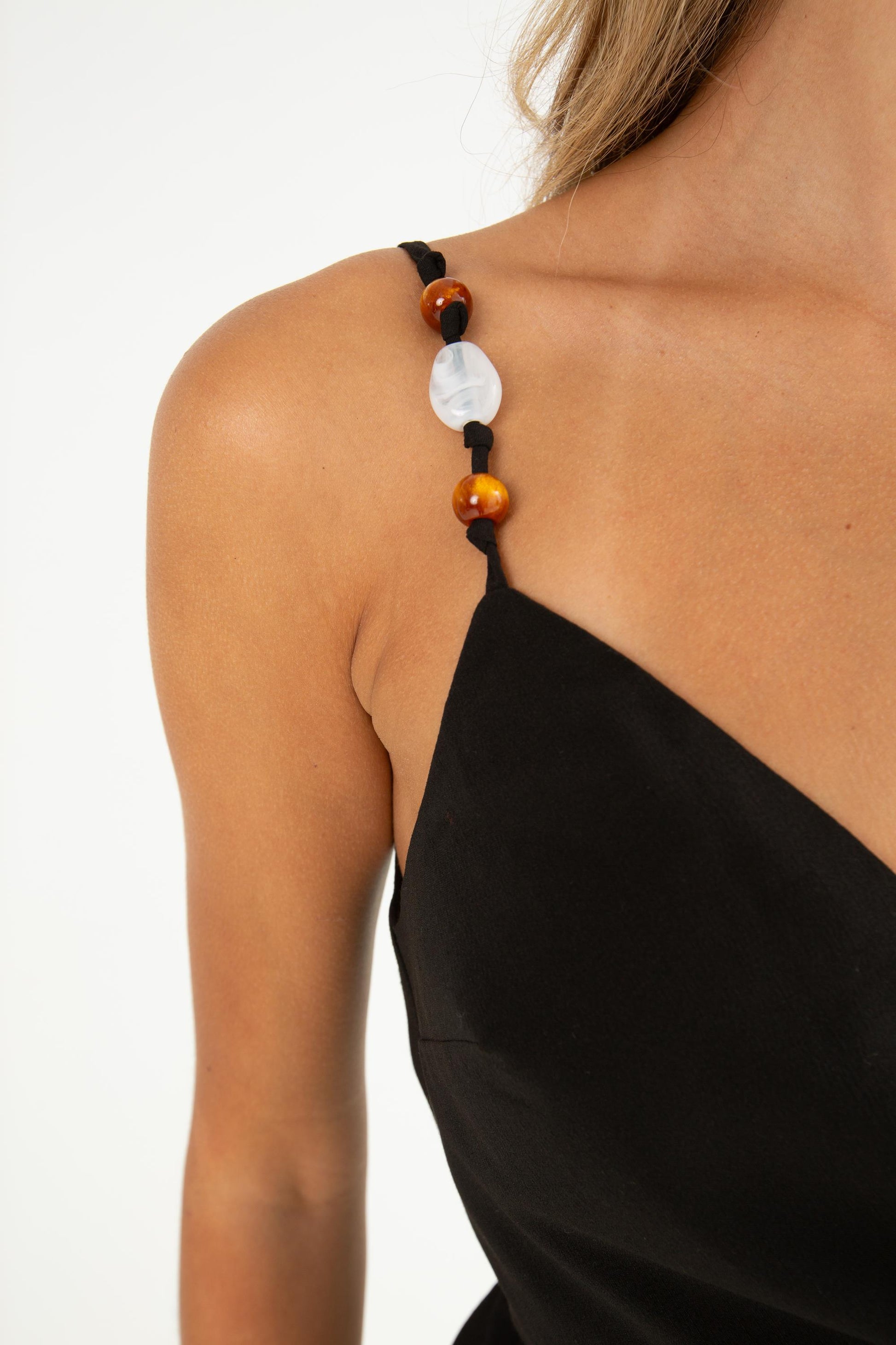 - Beaded Strap Faux Wrap Surplice Peplum