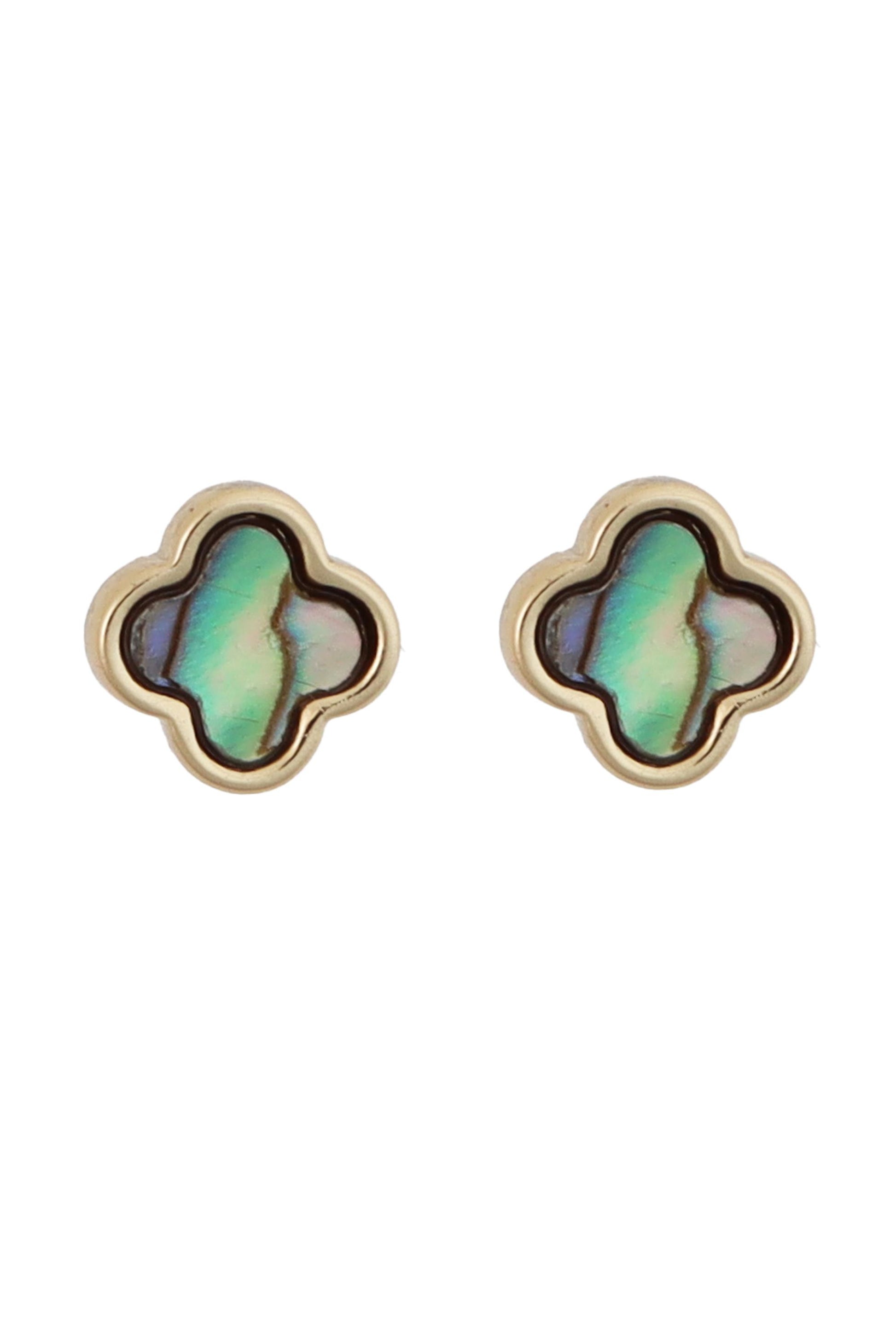 - Mini abalone clover stud earrings are made with an abalone center and a gold smooth setting. this pair can be easily stacked with other small post or huggie friends.