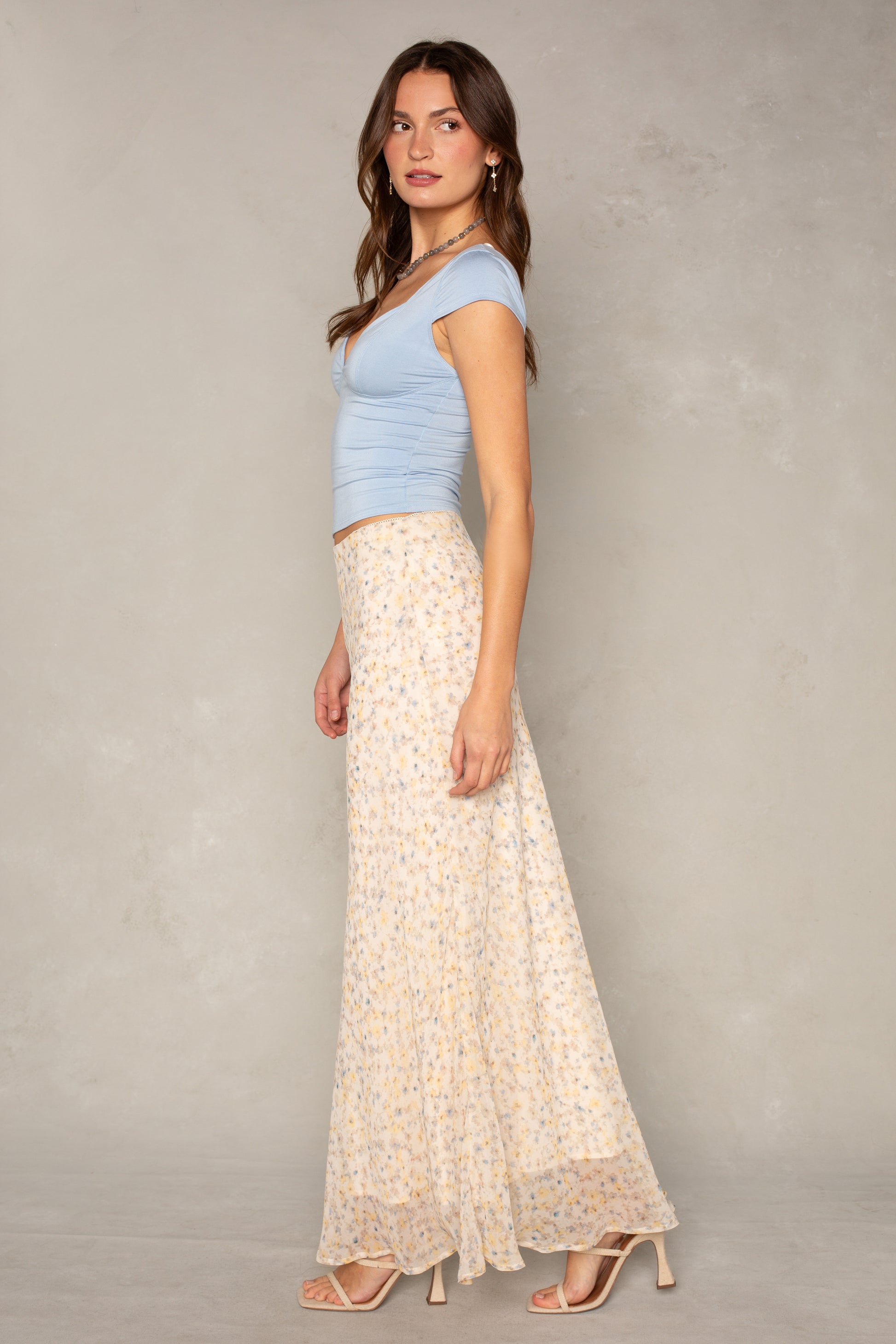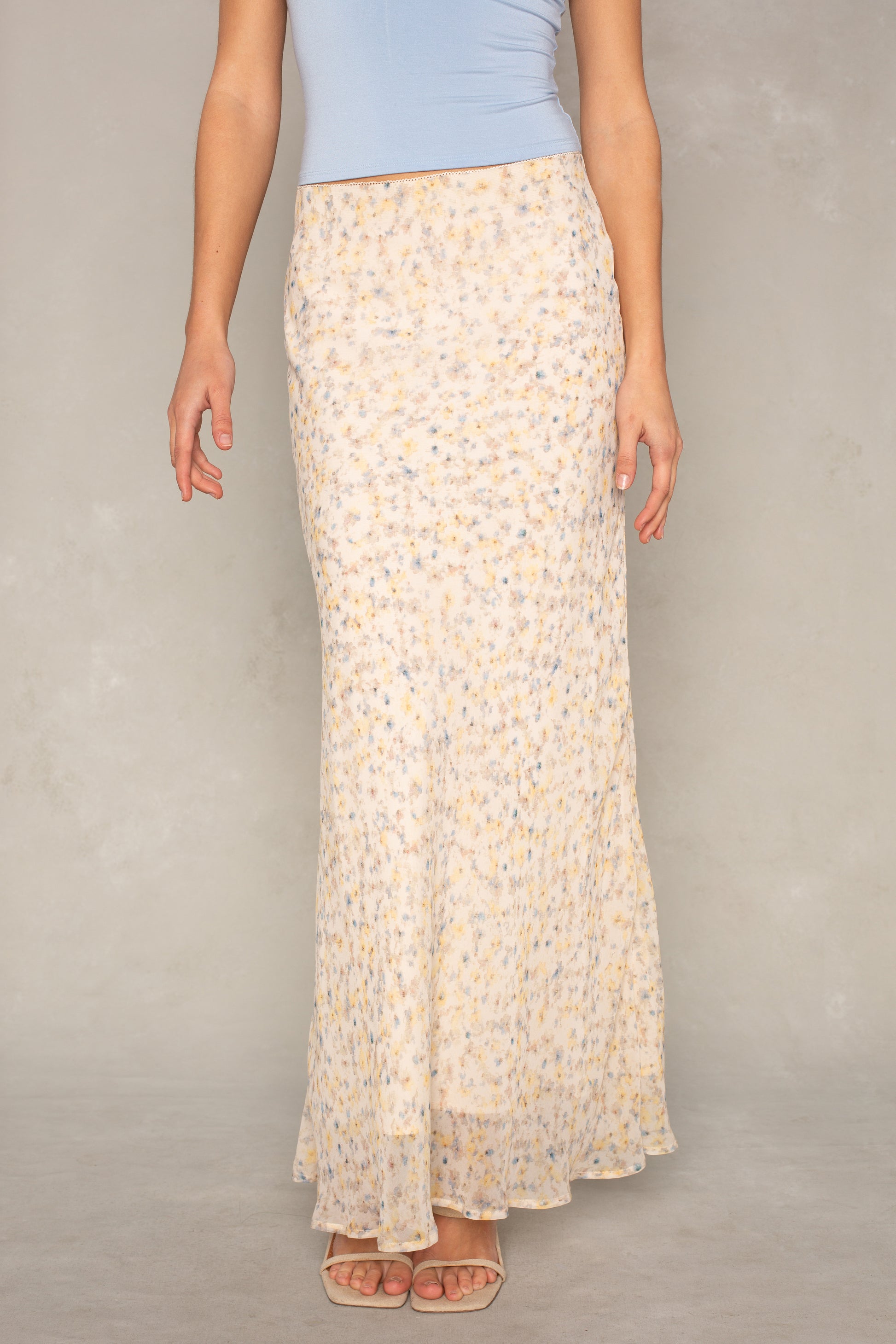 Discover effortless elegance with this charming floral midi skirt.