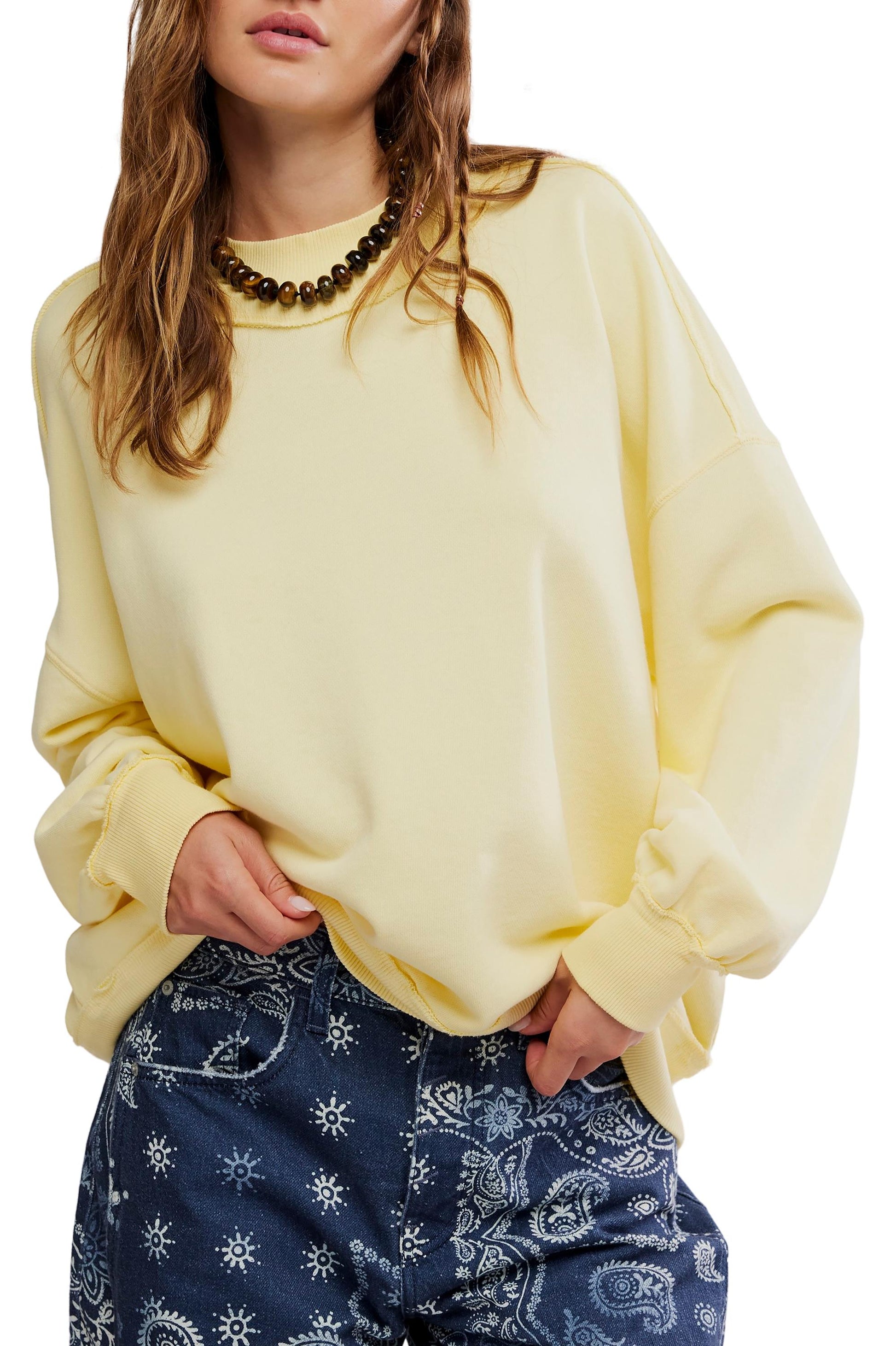 - Chill out and cozy up in this oversized pullover from We The Free, featured in a mock-neck style for a unique silhouette you'll reach for over and over again.
