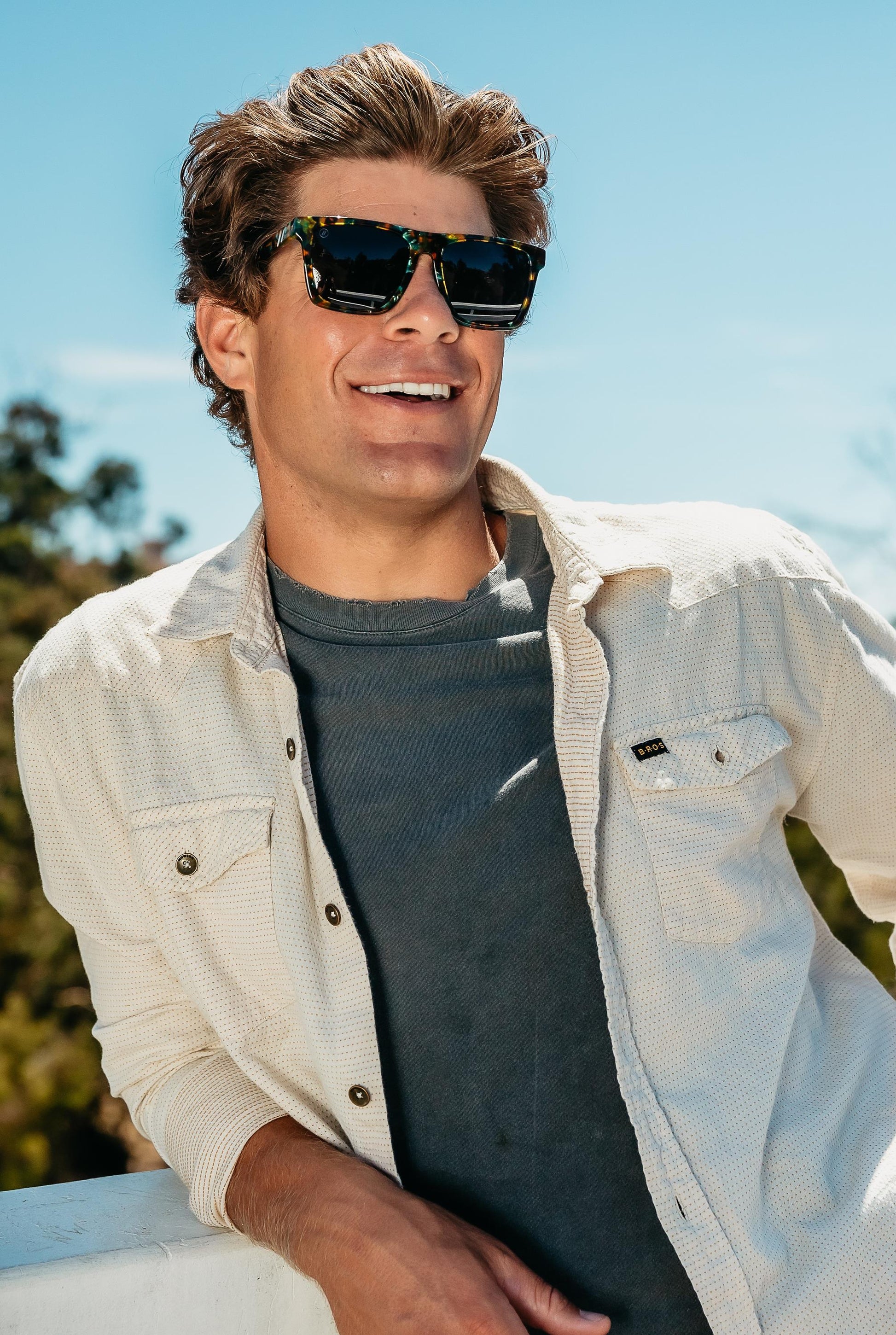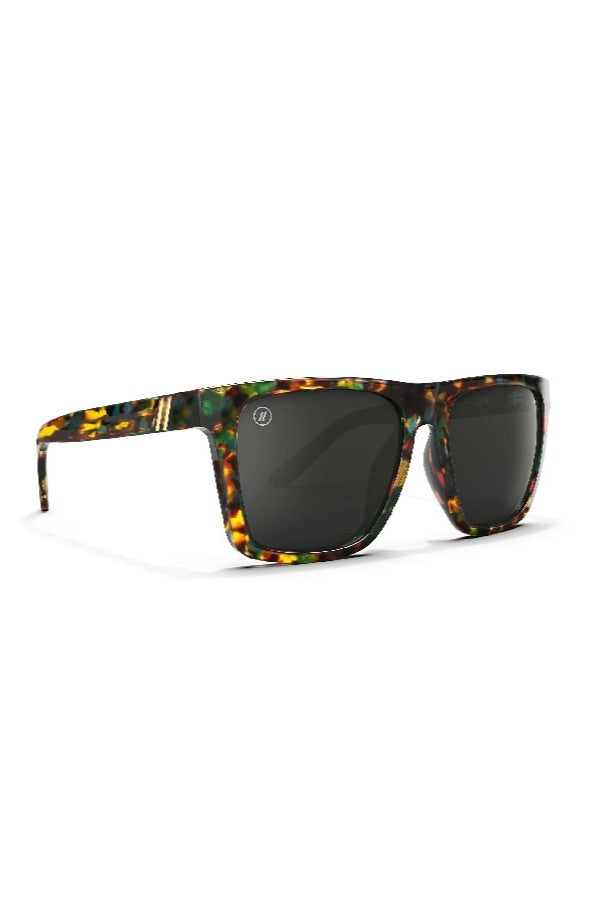 - The frames are a multicolored tortoise pattern with dazzling flecks of green, teal, orange, and gold. They’re paired with polarized smoke lenses and gold accenting on the temple stripes and interior logos. It’s a fierce aesthetic tailor-made for the bold and the badass