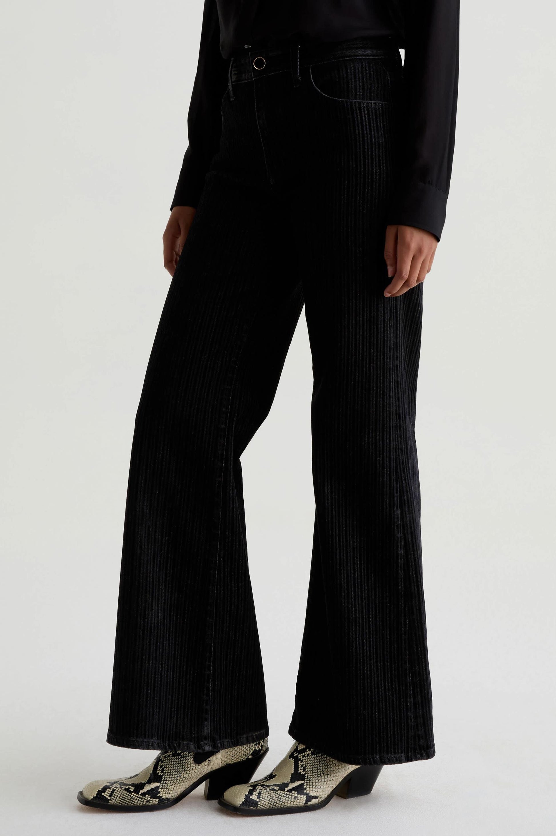 - The Saige Wide Leg Crop is a mid-rise fit jean. Crafted from 11.25 oz. Organic Black Rigid Denim in a washed black hue. Designed with classic five-pocket styling and premium construction for everyday wear.