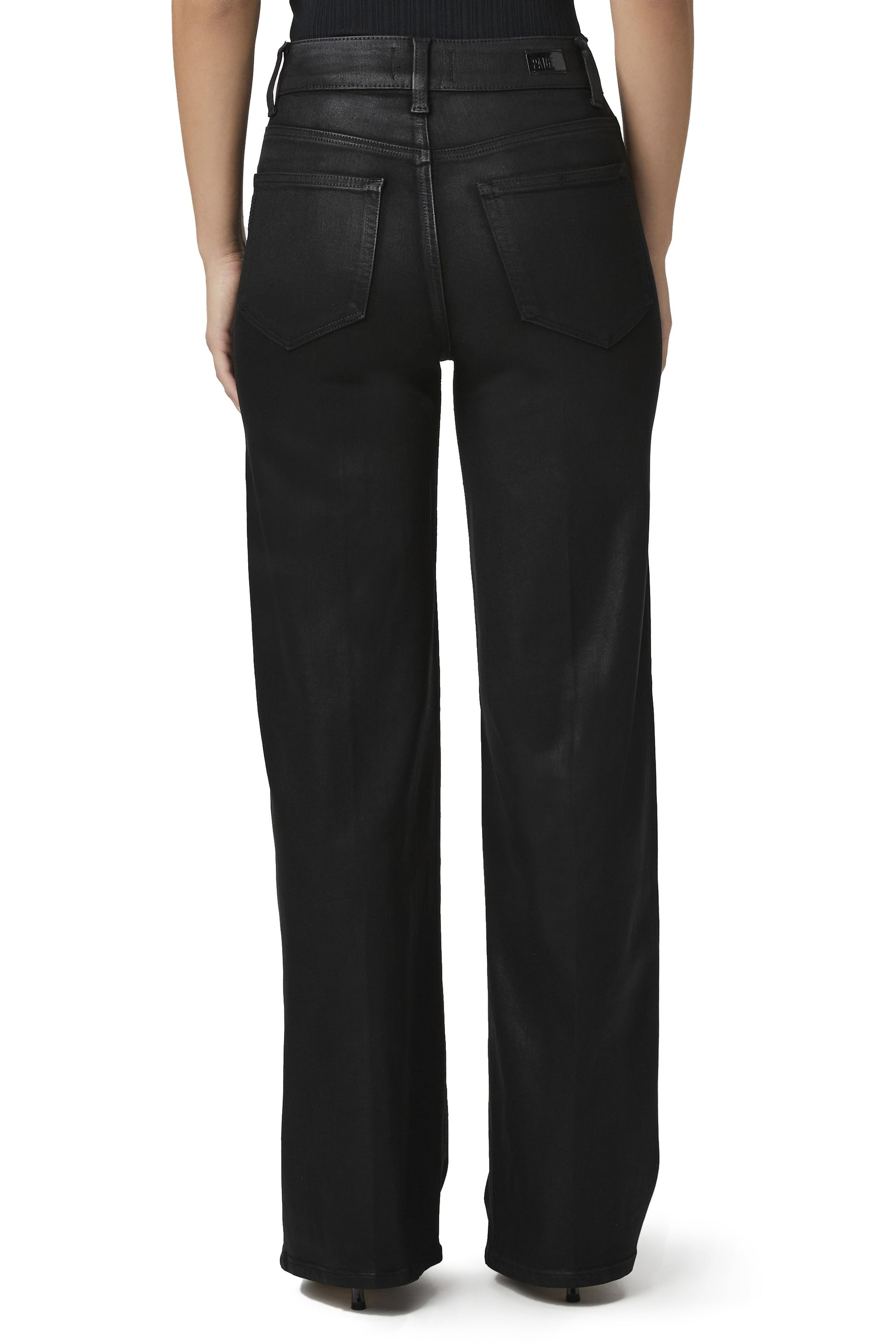 - Sasha is our high-rise wide leg with a fitted top block and a slightly relaxed fit. This super flattering style comes in a 32" inseam and has a leather-like look, but doesn't sacrifice comfort. Cut from our coated TRANSCEND denim in black, this style is luxuriously soft with plenty of stretch and recovery to give it a flawless fit from morning to moonlight.