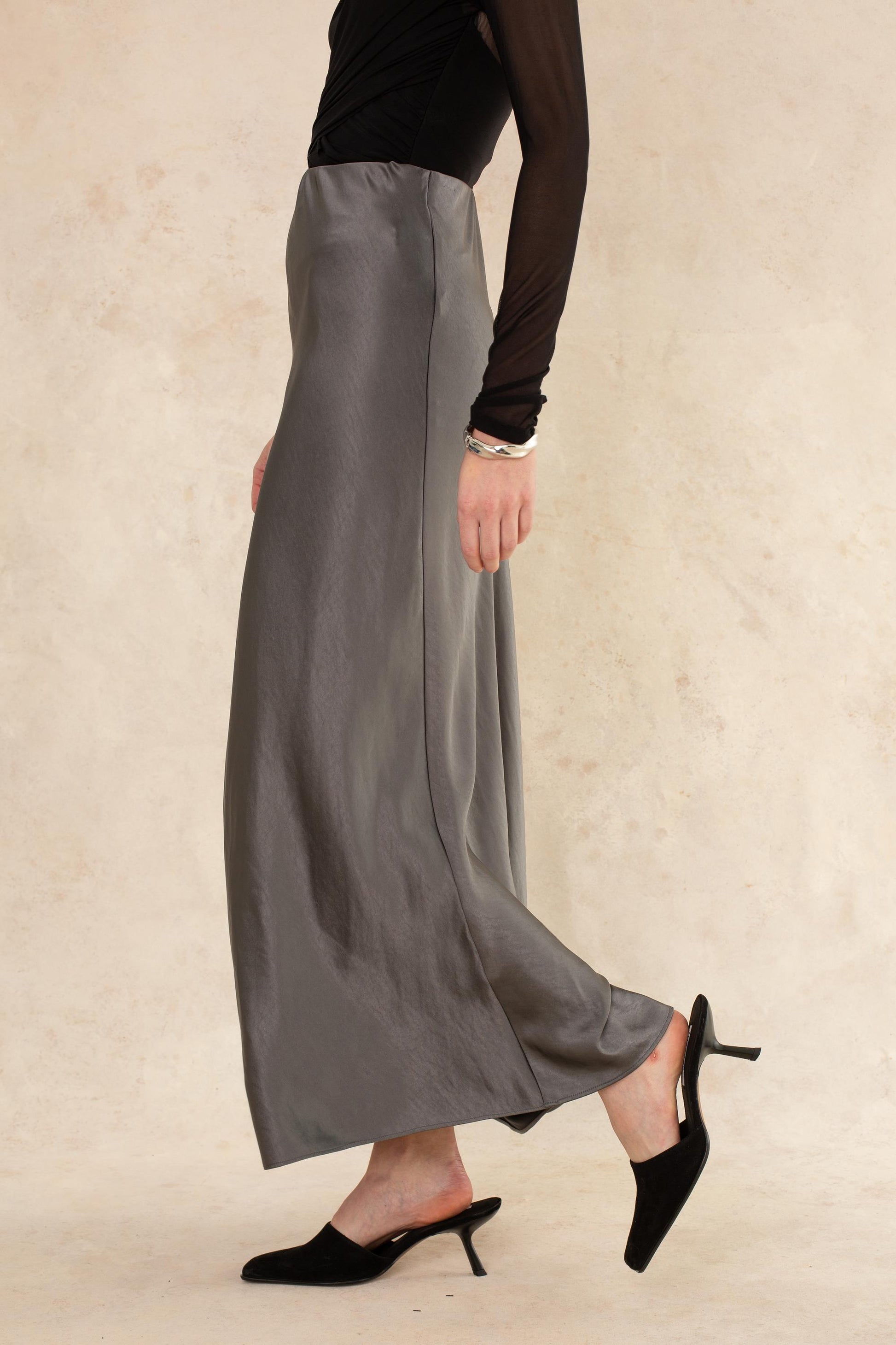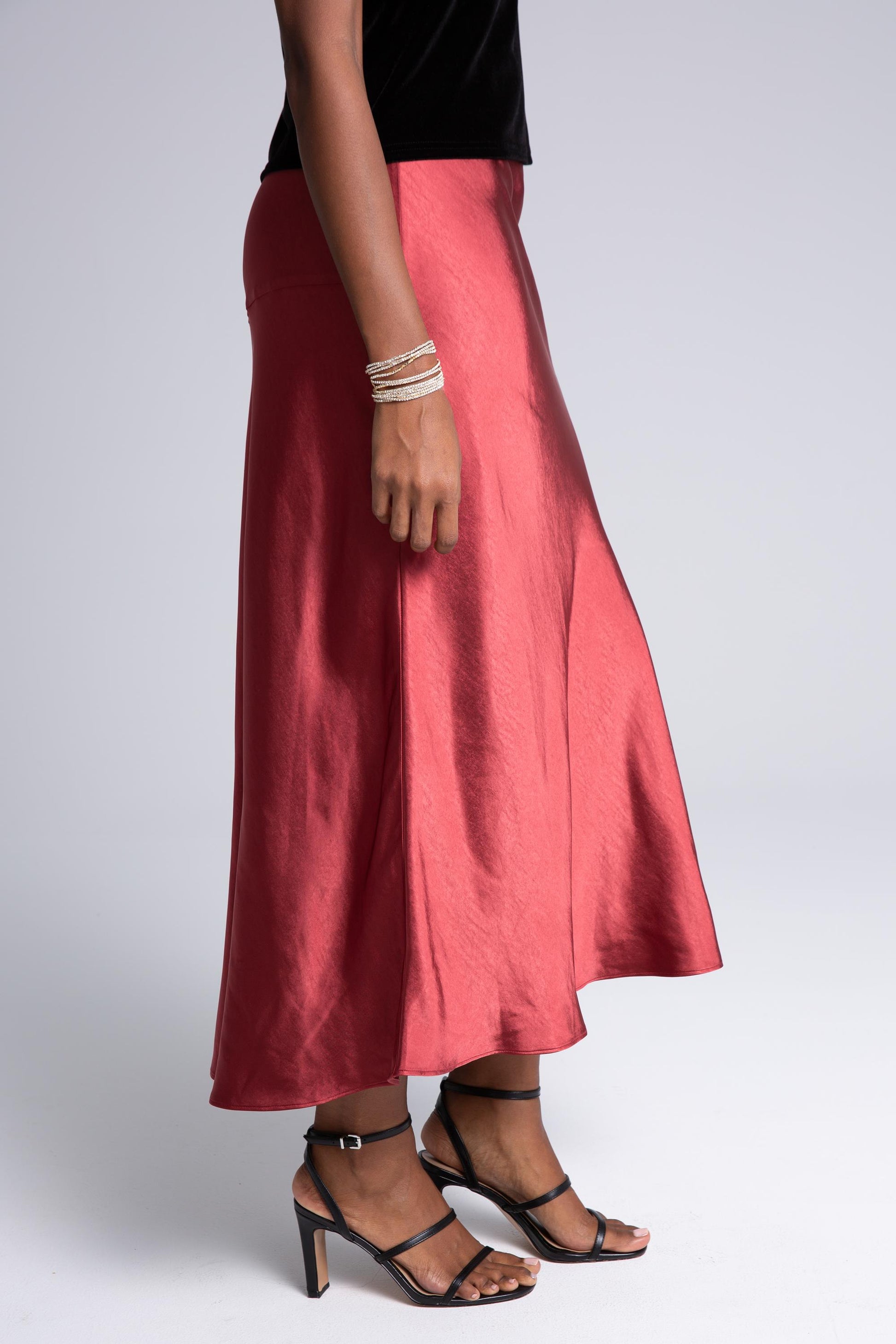 - Elevate your style with our luxurious Satin Midi Skirt, designed for effortless elegance. Crafted from silky satin, this skirt glides beautifully as you move, offering a flattering silhouette that complements any body shape. The classic midi length provides versatility, making it perfect for both casual outings and more formal events.