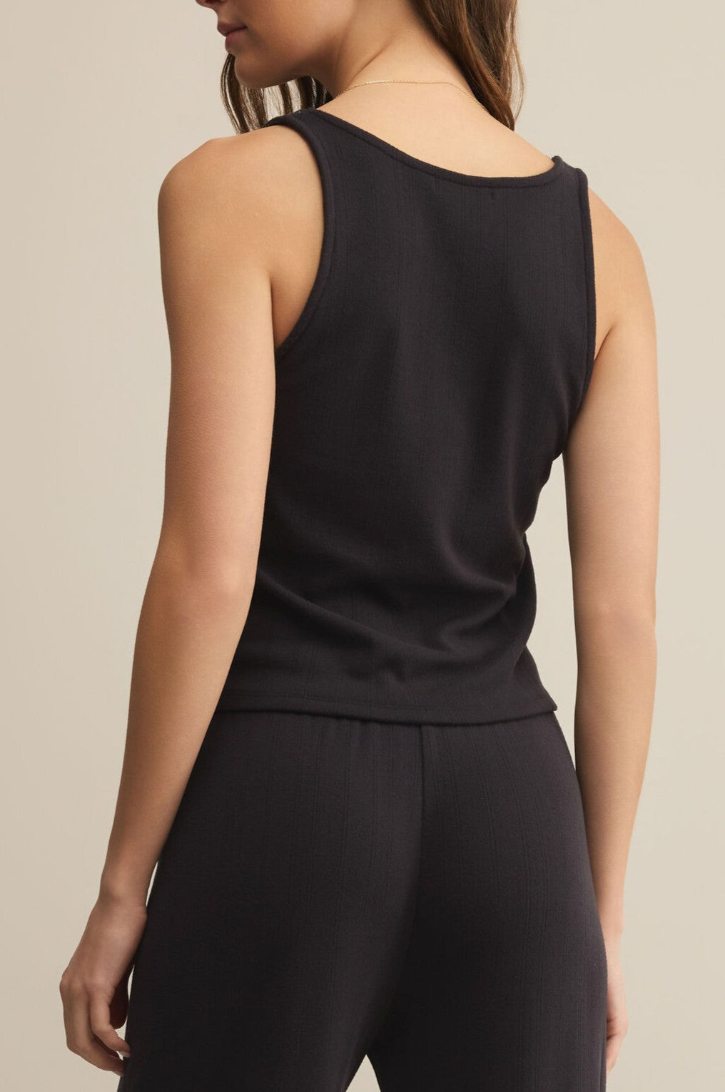 - Sleek, breathable, and made to move with you. This square-neck tank features wide straps and a subtly textured pointelle fabric that’s as light as it is flattering.