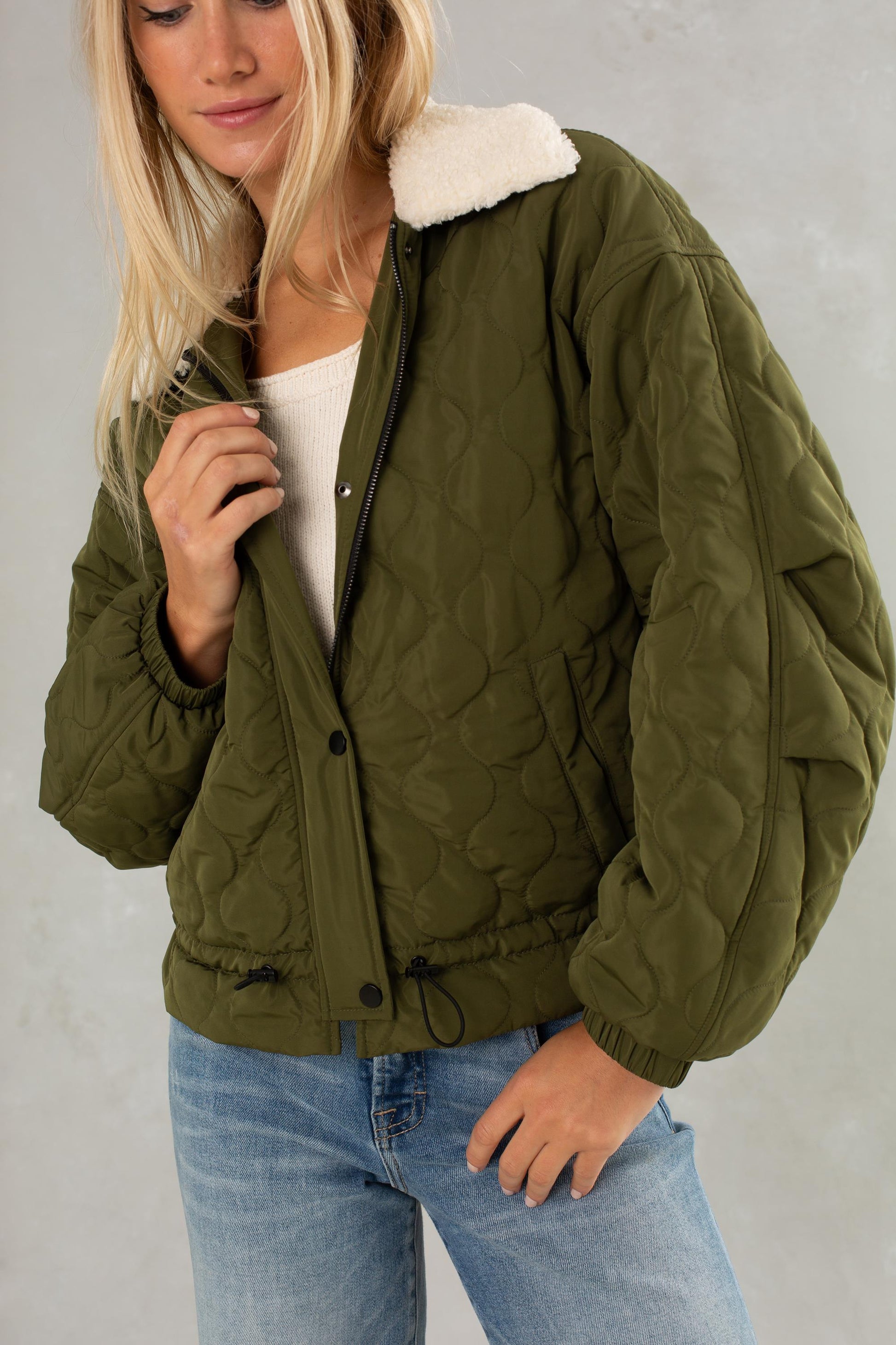 - Laid-back layering meets elevated edge in the Stevie Quilted Jacket. Designed with a lightweight quilted finish, this jacket features snap-button closures, roomy pockets, and a relaxed silhouette that’s perfect for throwing on over any look. Cozy yet cool, it’s a versatile staple you’ll reach for season after season.