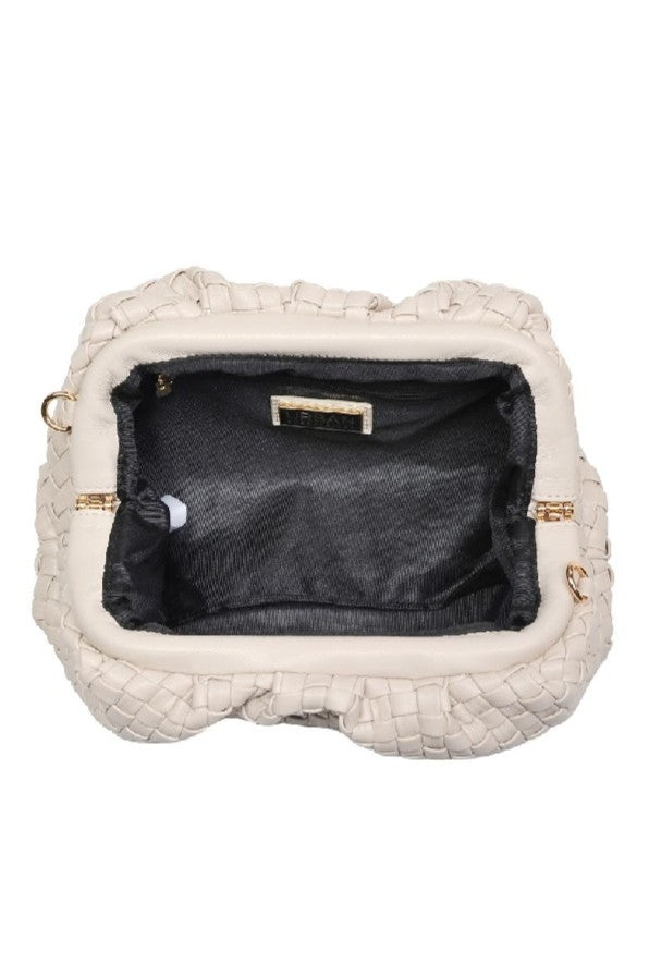 - Exterior Details: Woven Design, Gold Hardware, Detachable Chain Strap