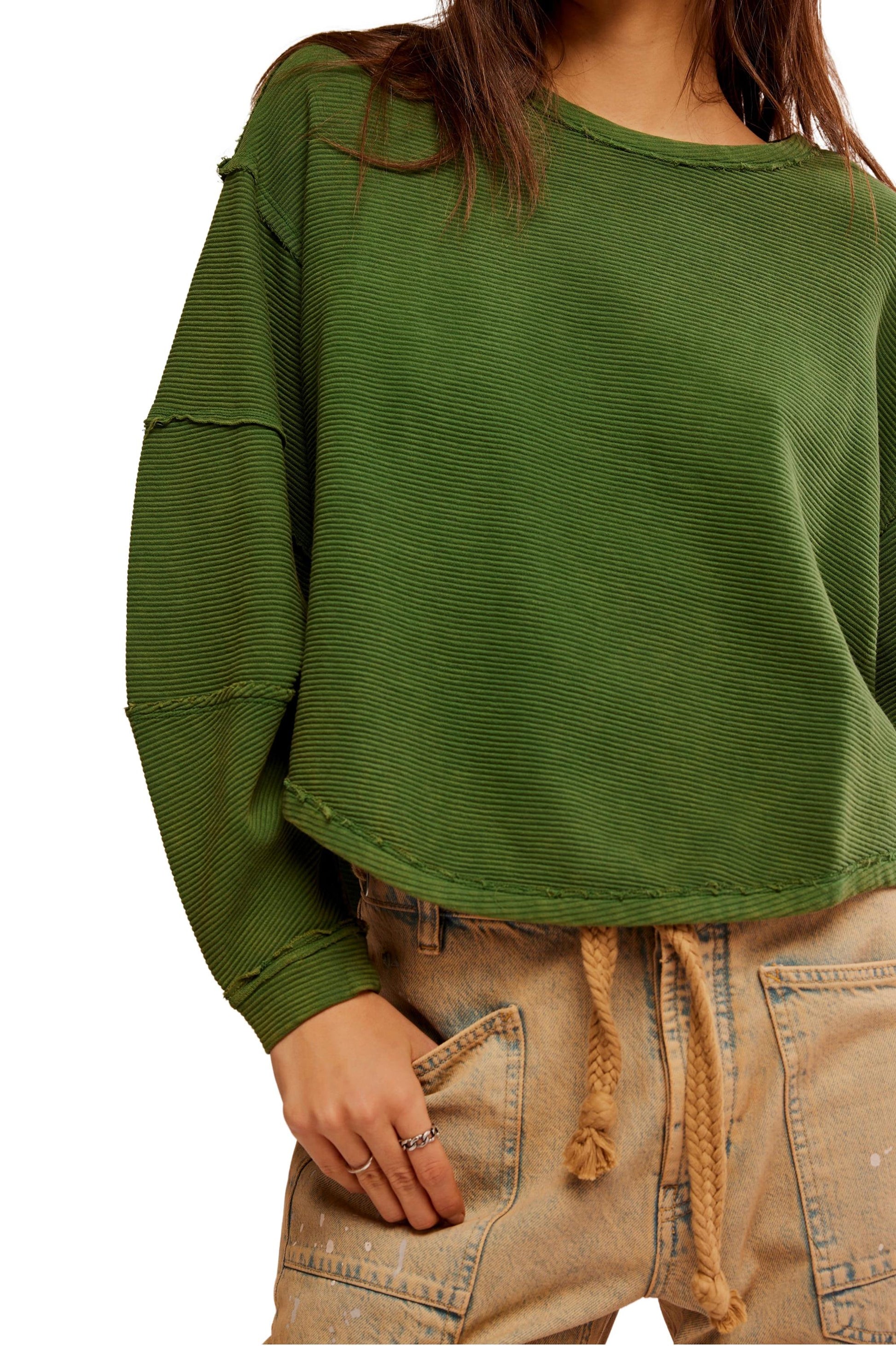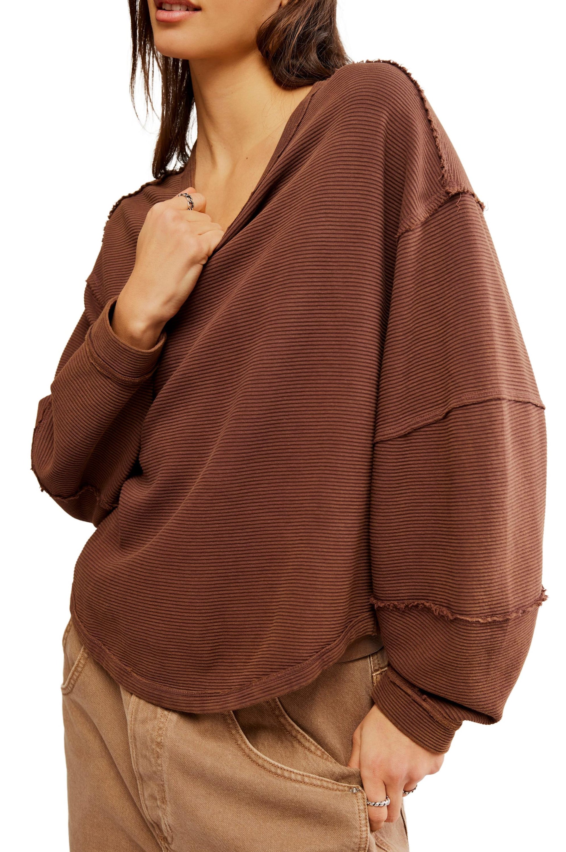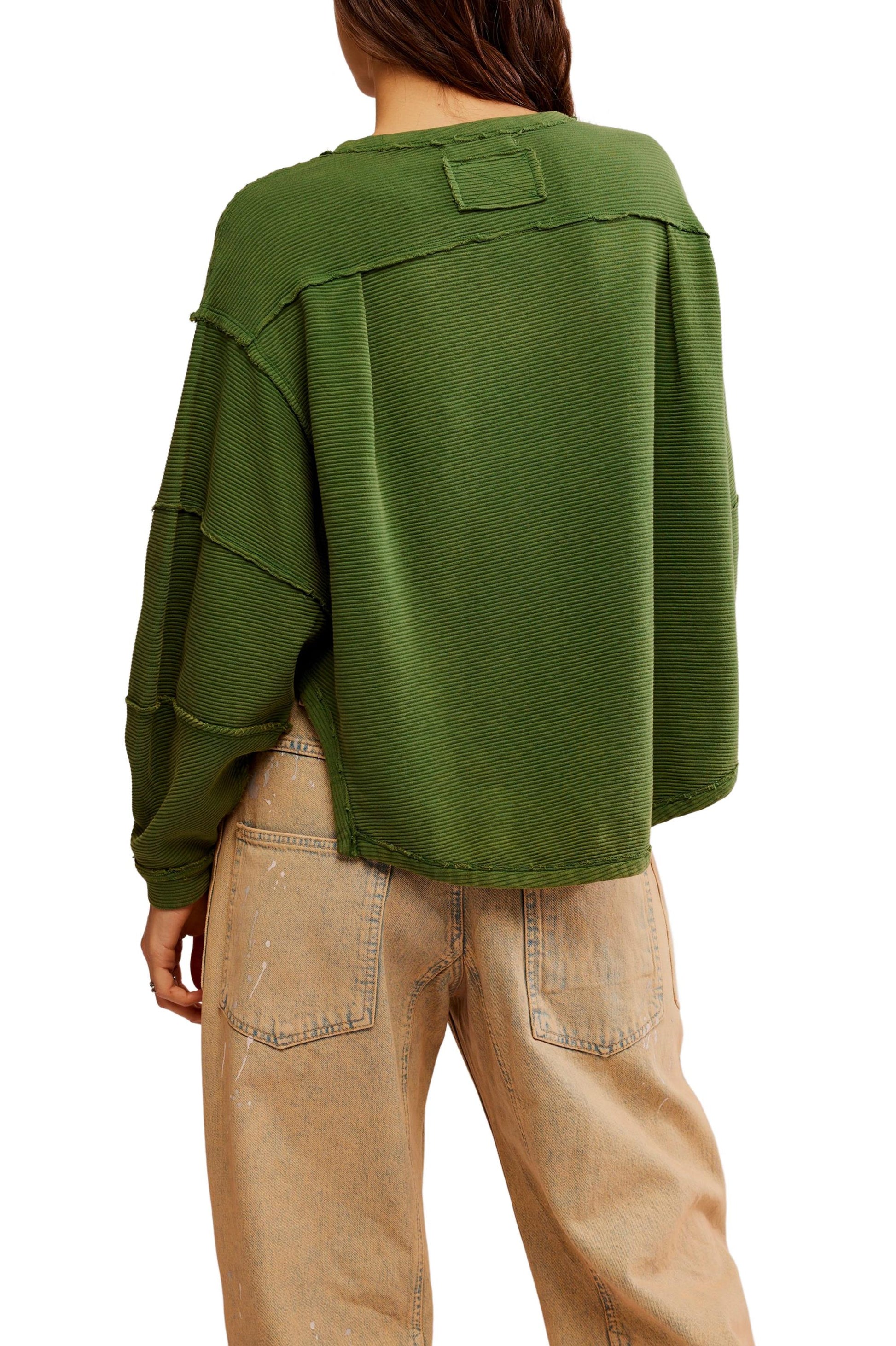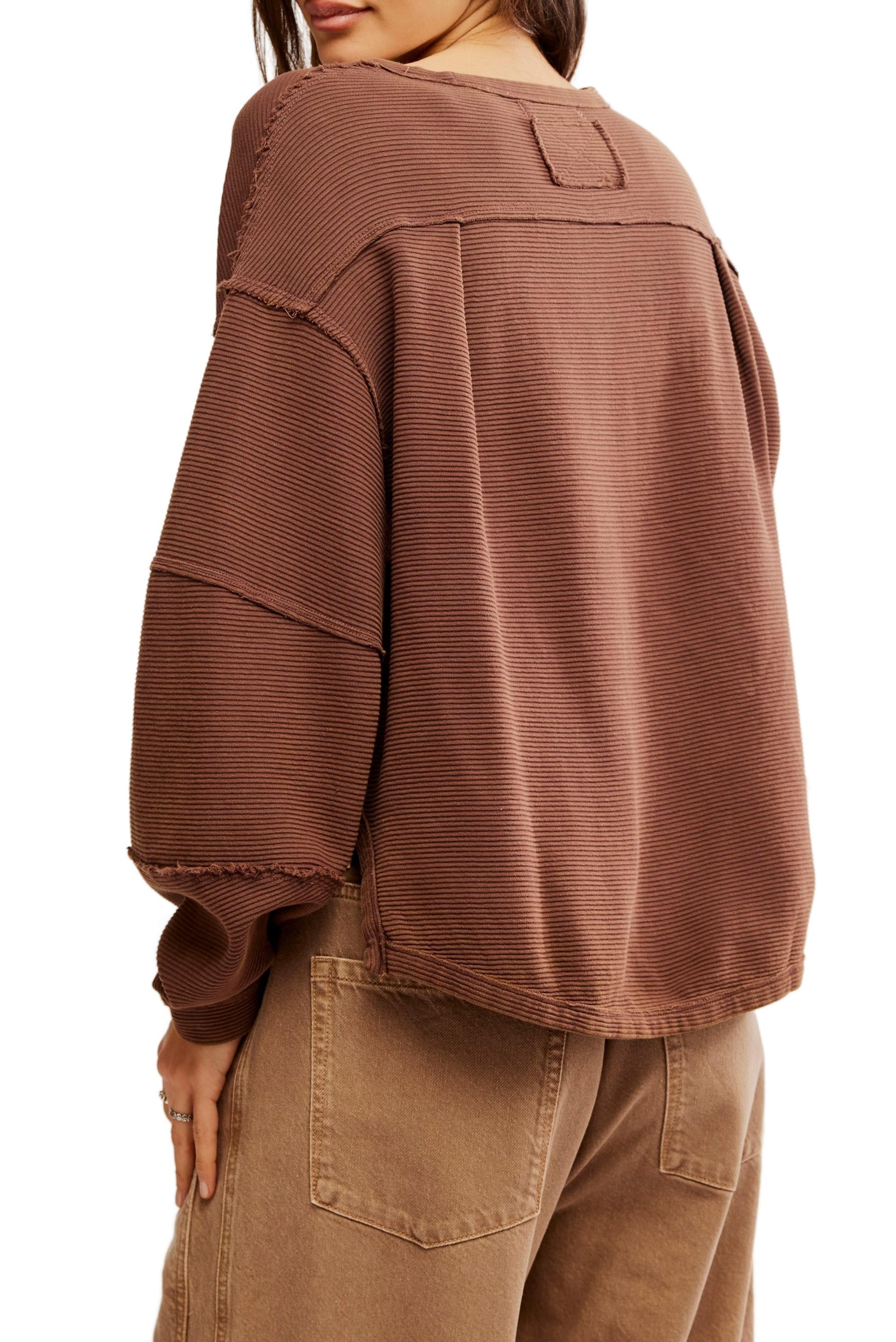 - An elevated take on the classic tee, this long-sleeve from our We The Free collection features a ribbed fabrication and slouchy silhouette with defined seams and a scoop-neckline.