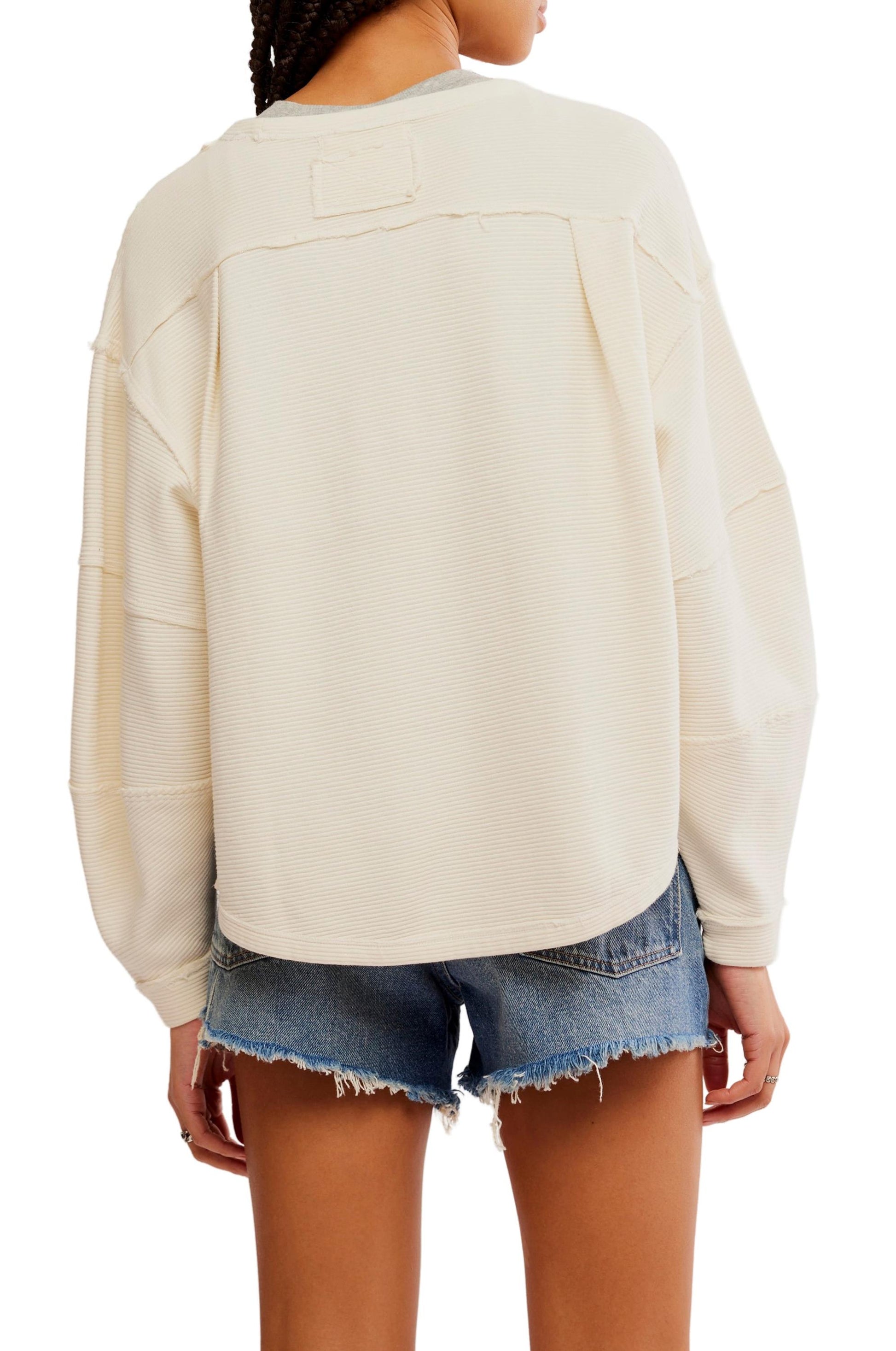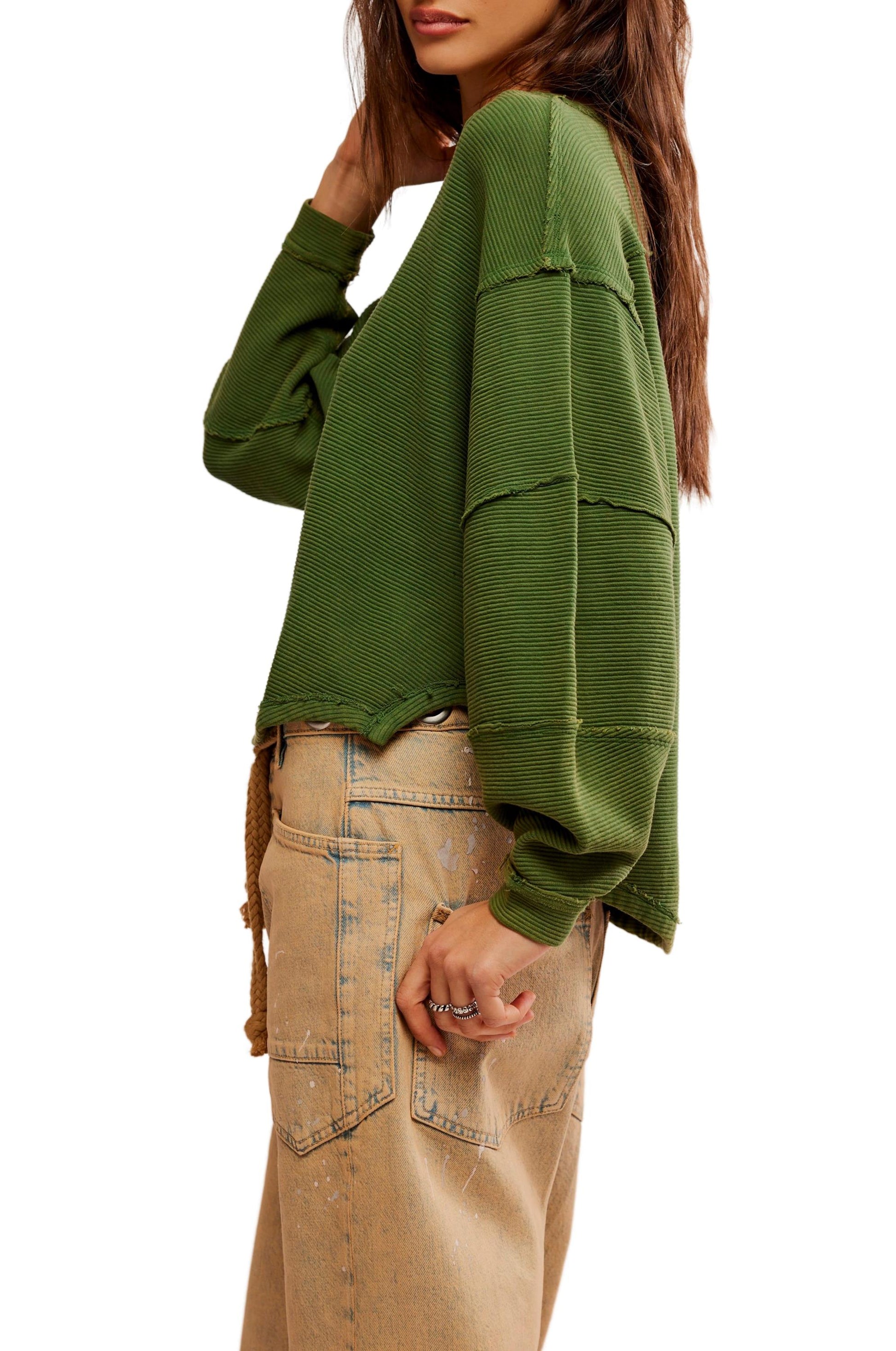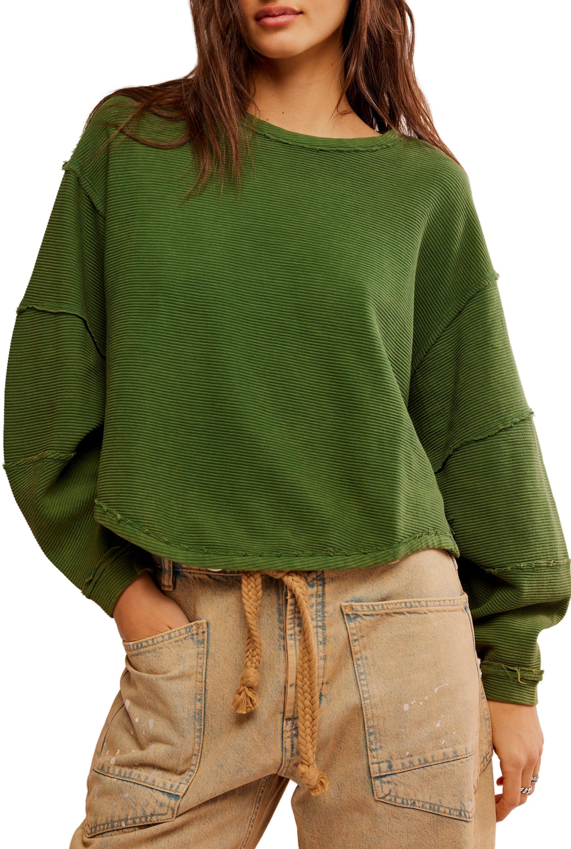 - An elevated take on the classic tee, this long-sleeve from our We The Free collection features a ribbed fabrication and slouchy silhouette with defined seams and a scoop-neckline.
