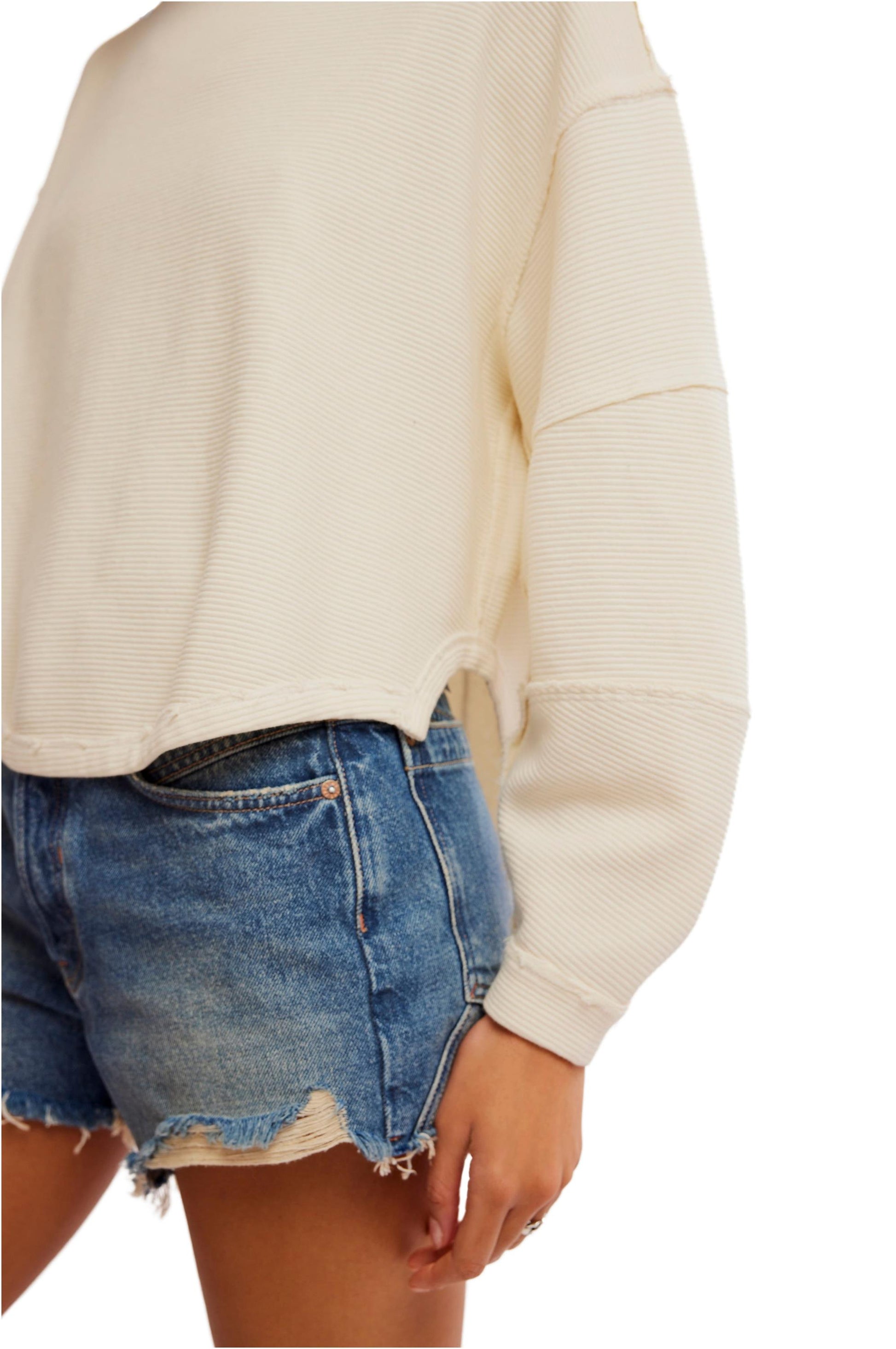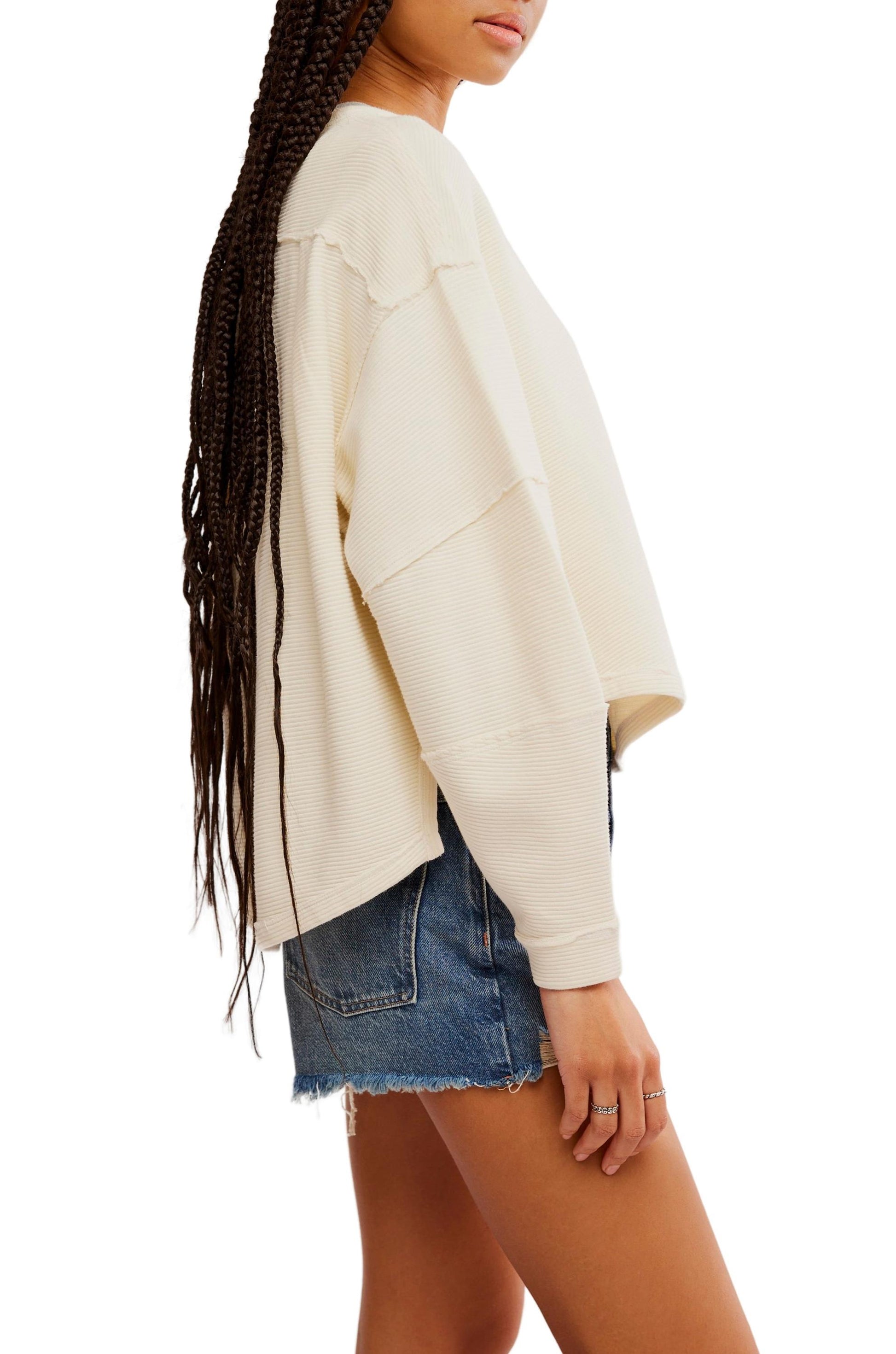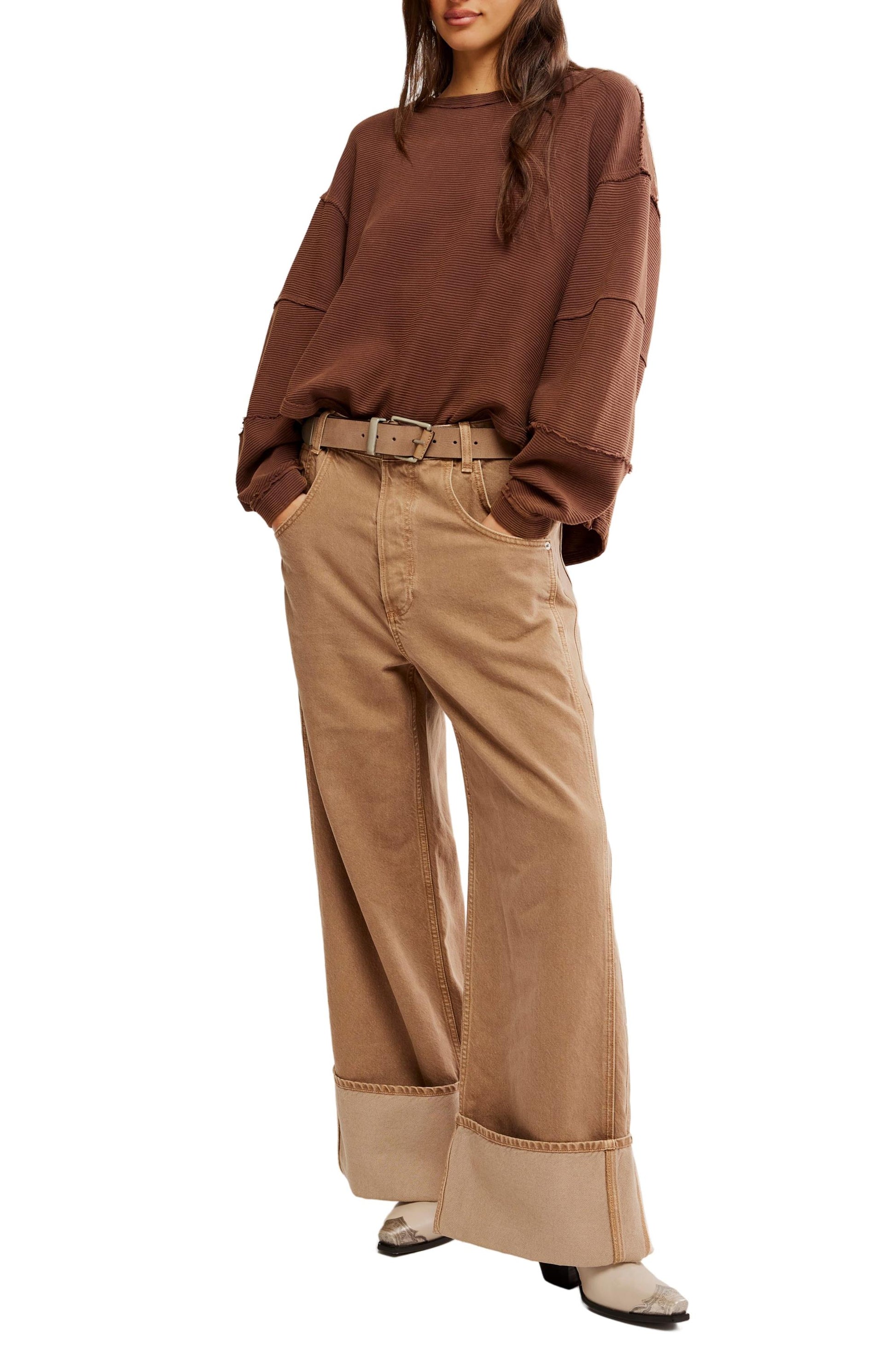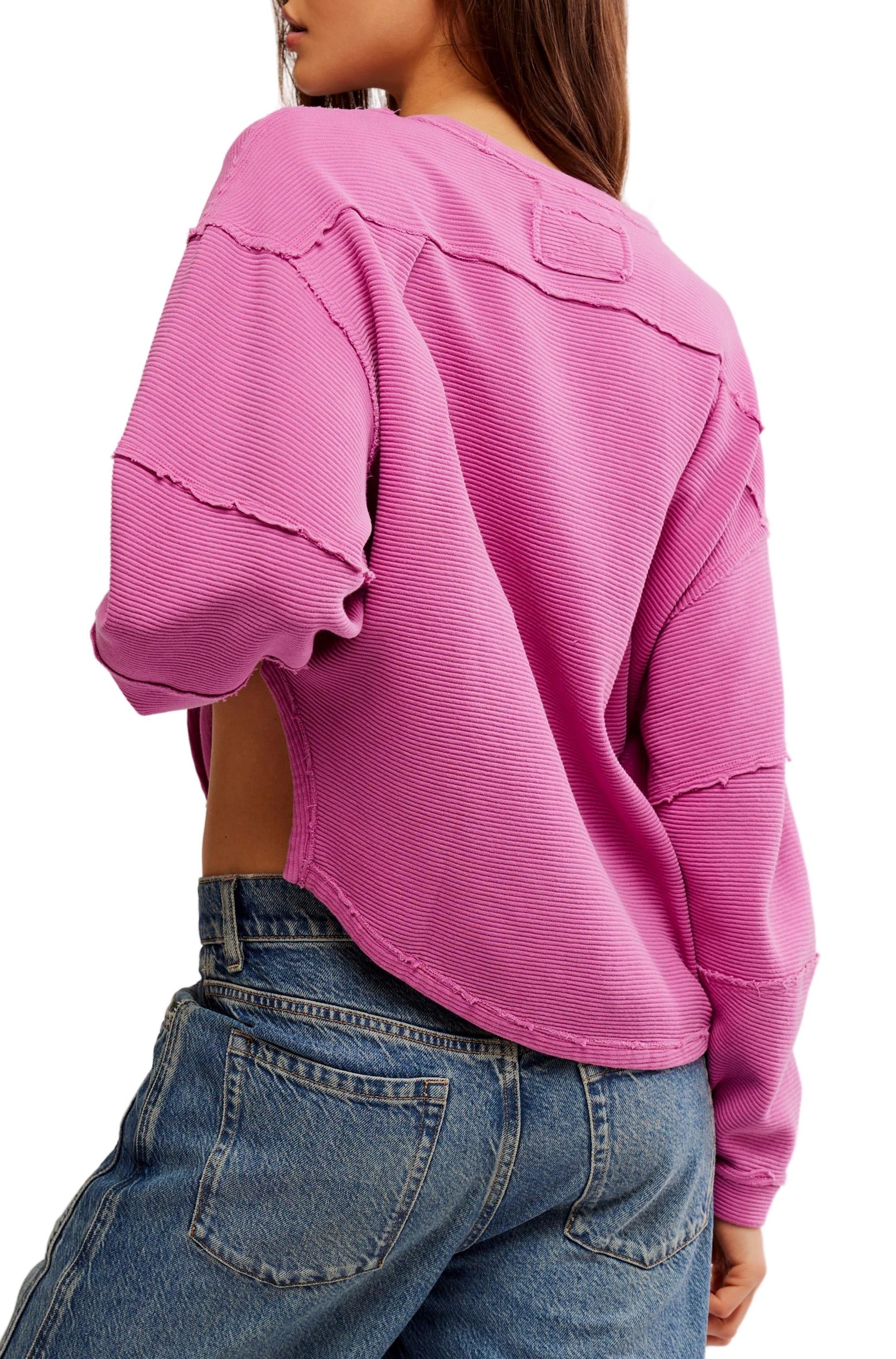 - An elevated take on the classic tee, this long-sleeve from our We The Free collection features a ribbed fabrication and slouchy silhouette with defined seams and a scoop-neckline.
