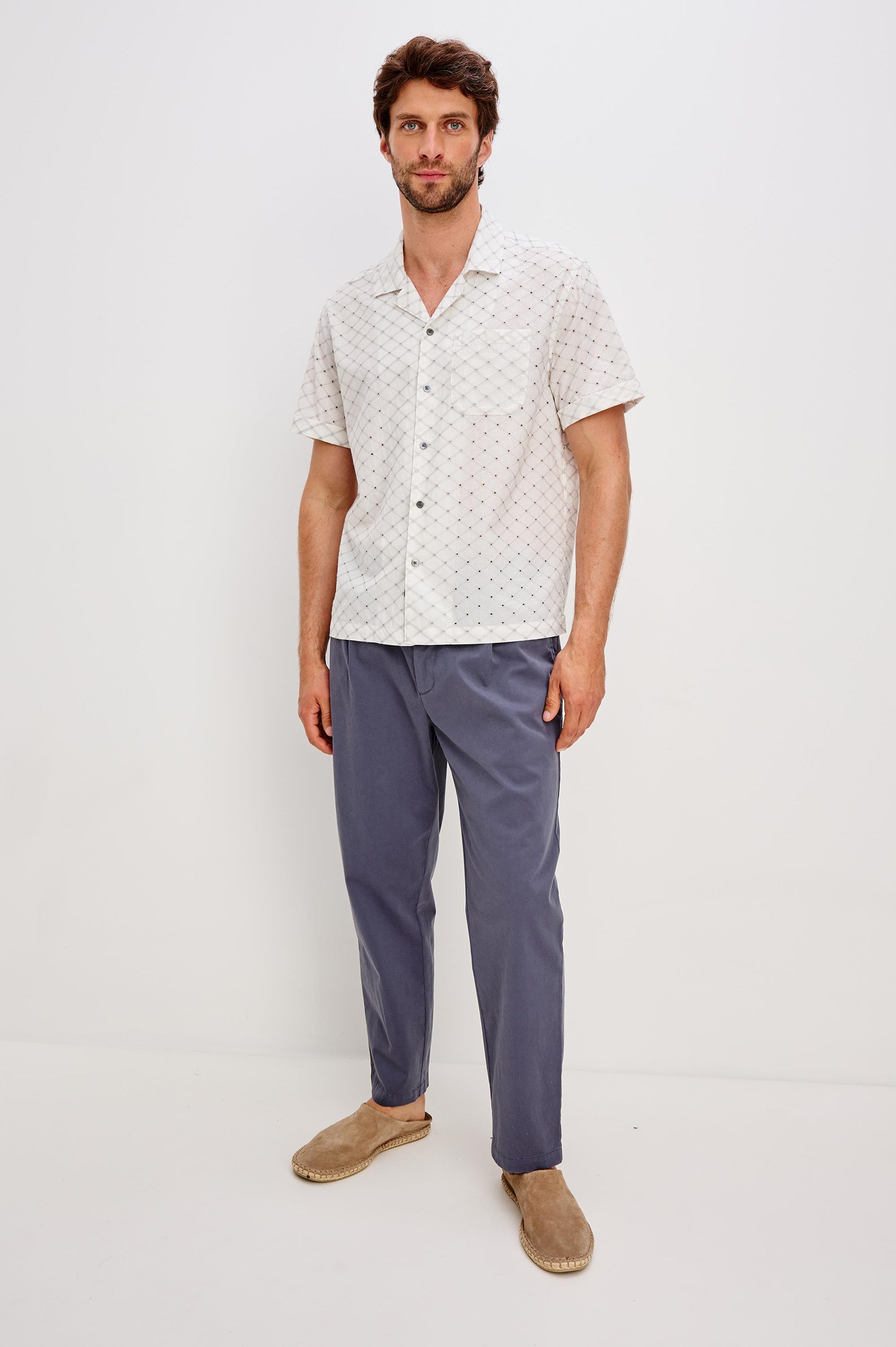 - The Tyler reimagines the classic short-sleeve shirt with an embroidered stretch cotton. Designed with a chest pocket and traditional fit, this button-down can be worn open over a tee or styled on its own.